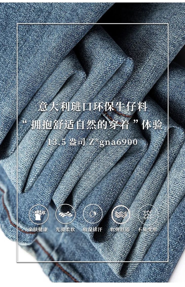 柜6K9~杰尼亚同款男士柔软高弹修身直筒牛仔裤