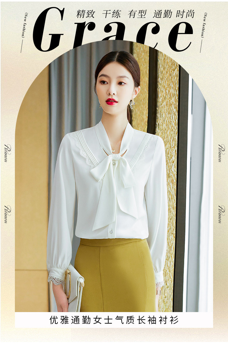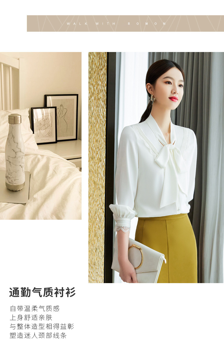 【轻盈舒适】罗蒙多色可选女士长袖衬衫气质领结简约时尚百搭衬衣女
