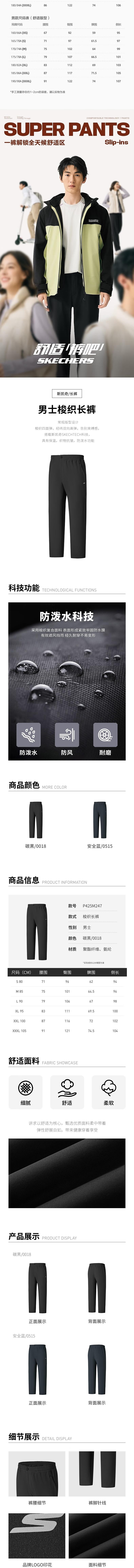 Skechers斯凯奇 男梭织长裤 P425M247-0018