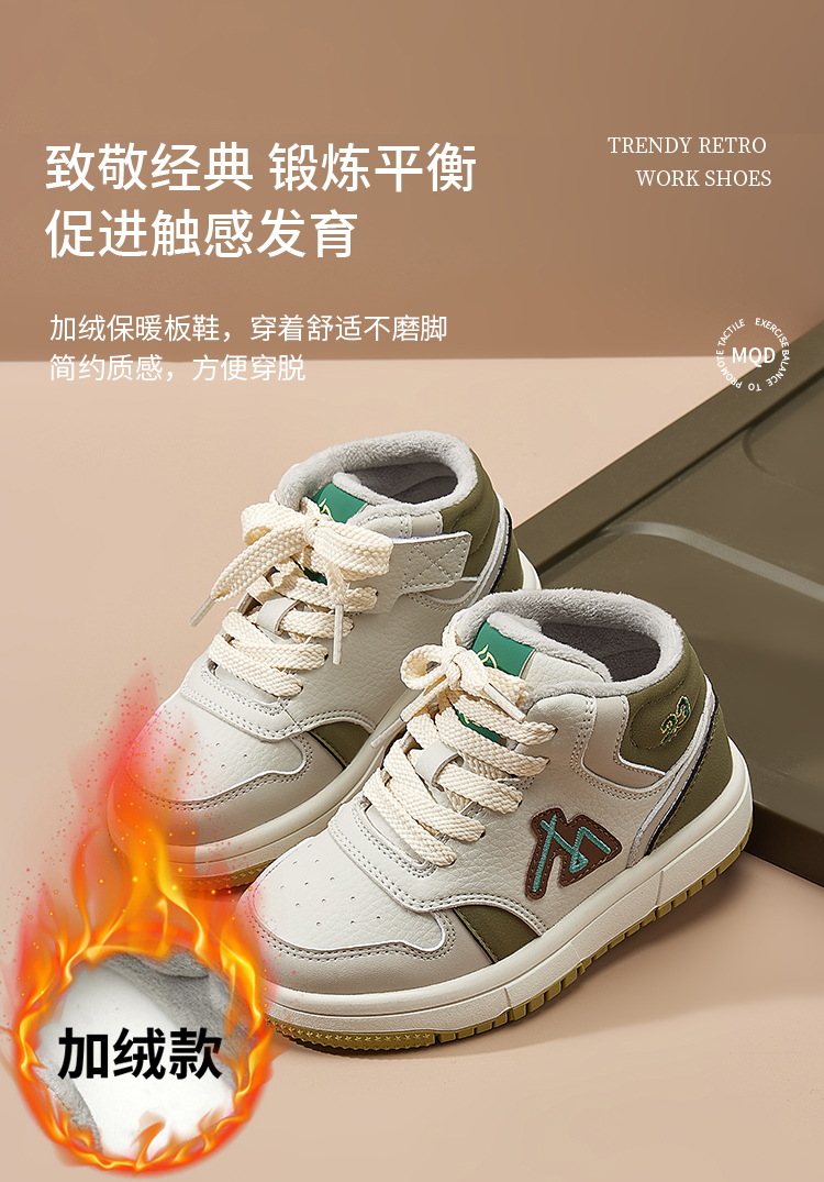 【ZY马骑顿】儿童板鞋冬季加绒男中大童保暖户外跑步鞋女童棉鞋