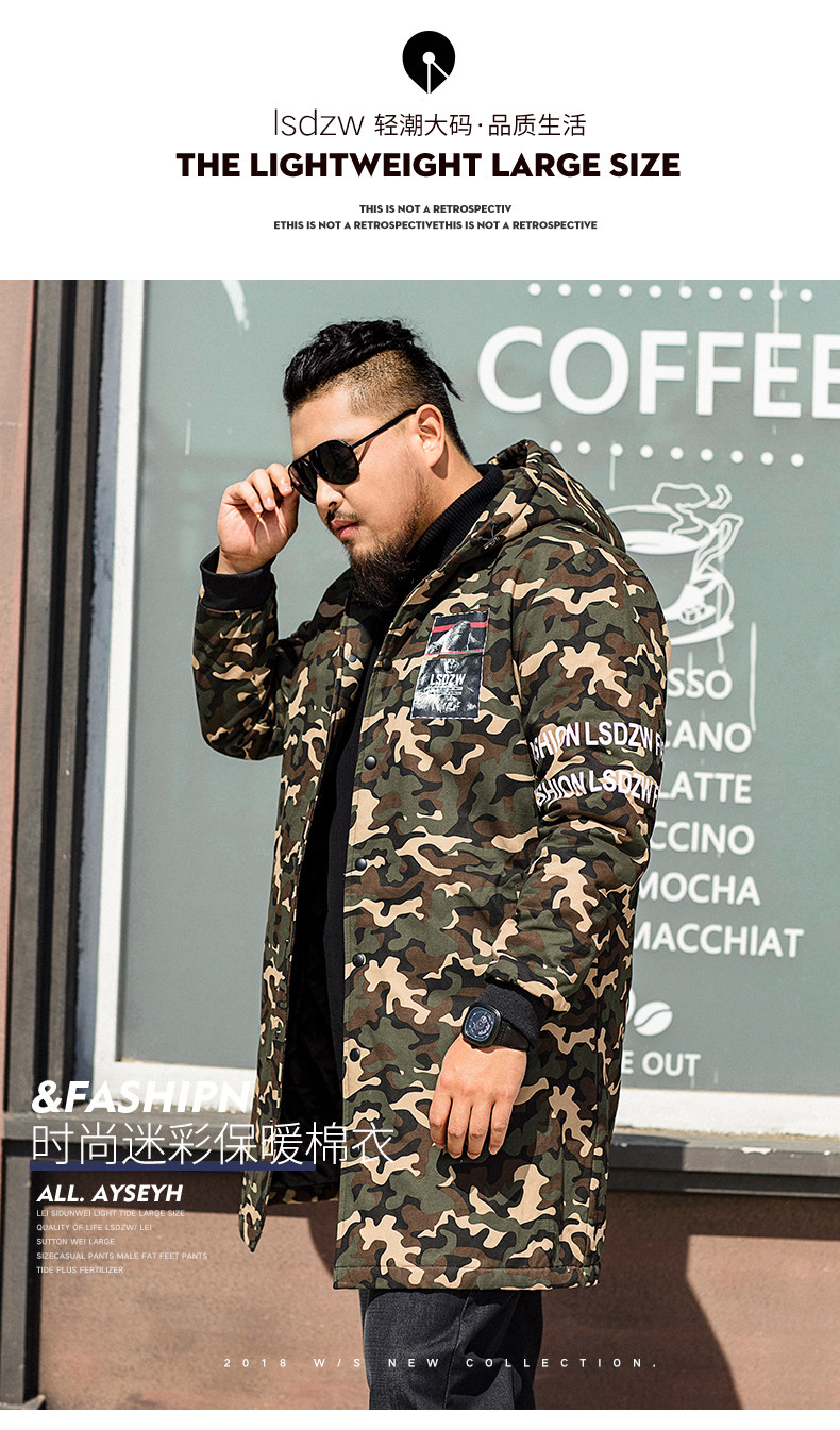 【清仓秋冬2021】LSDZW雷萨顿威男士大码棉衣肥佬中长款棉服加厚胖子修身冬装外套