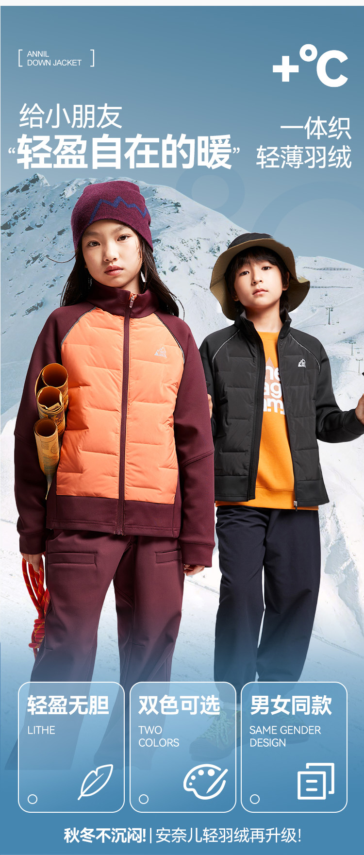 【轻薄5~15℃】男女童短款羽绒服冬季新款安奈儿童装EM445510