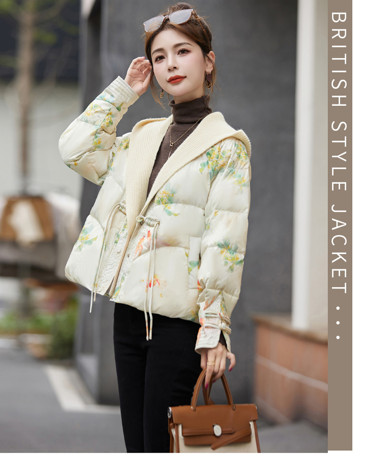 冬季新款,花色白鸭绒宽松短款羽绒服(帽子可脱卸)HR-XPHY90