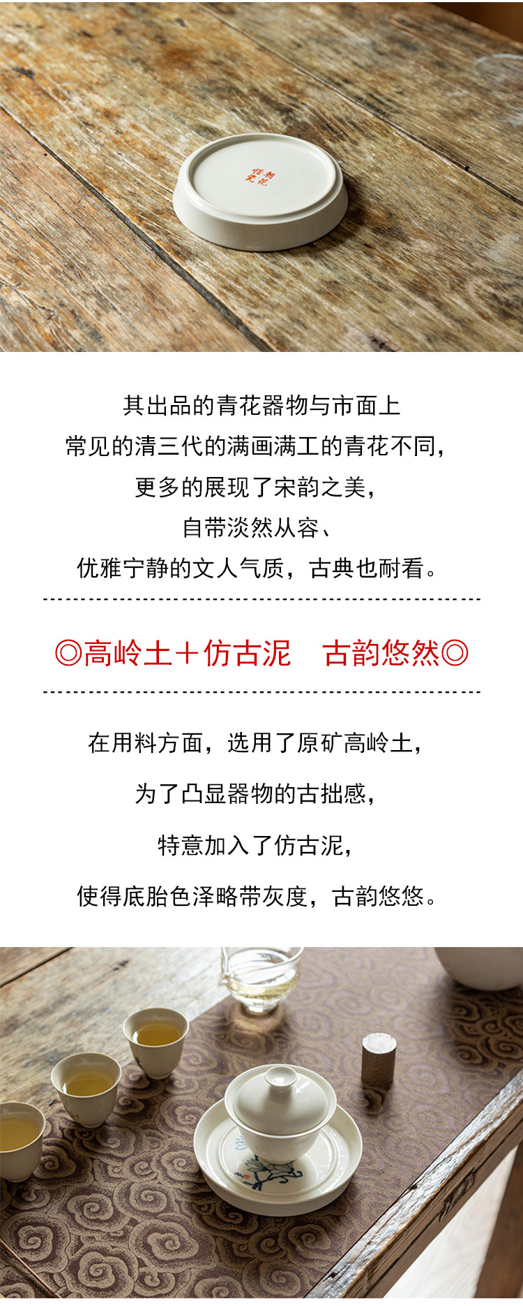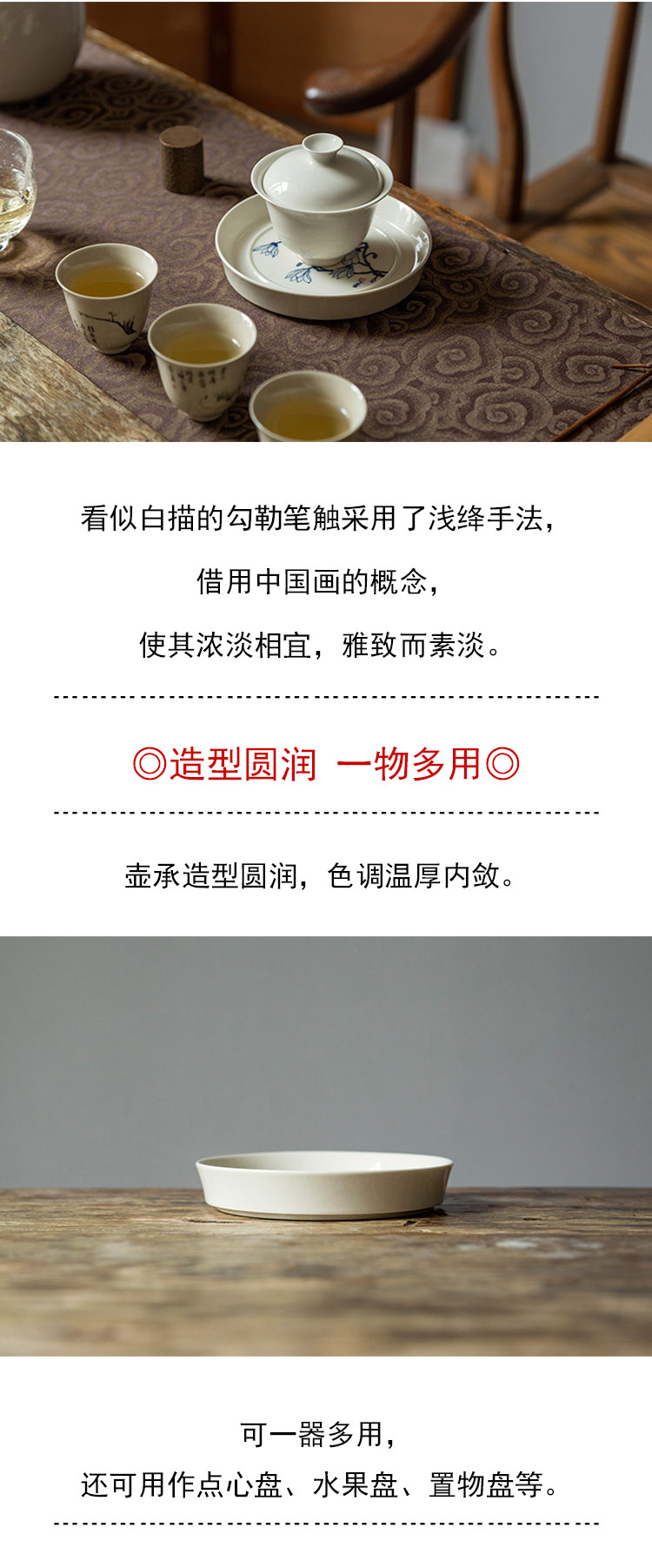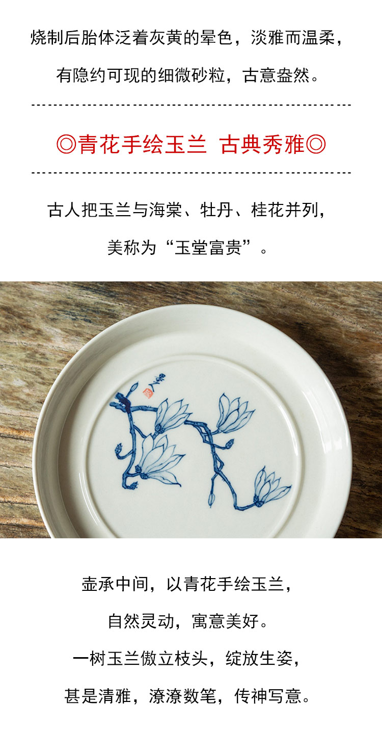 茶香记 景德镇 手作青花手绘干泡盘 玉兰花开 壶承 古典秀雅 圆融百搭 素净内敛