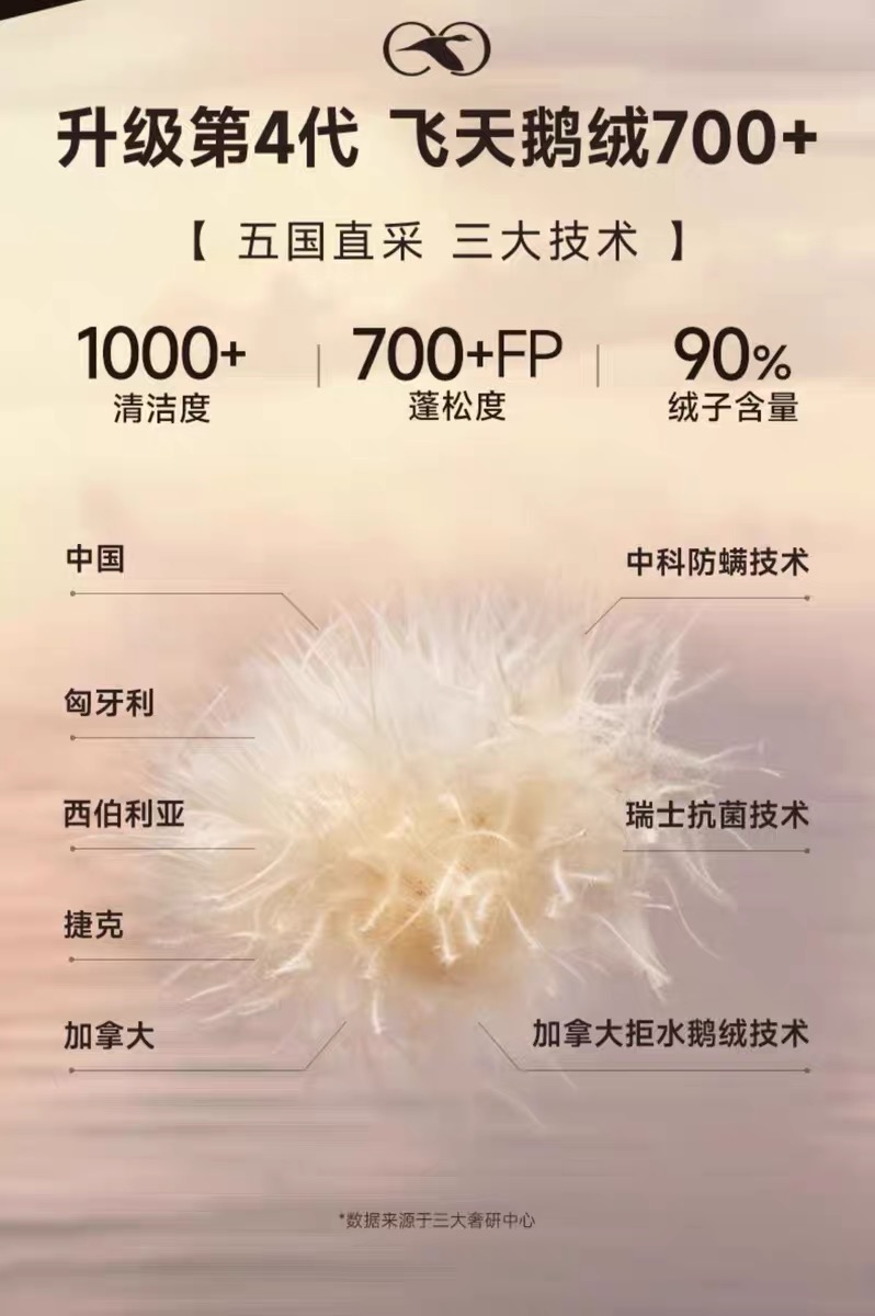 匈牙利飞天90鹅绒,700+蓬松,1000+清洁