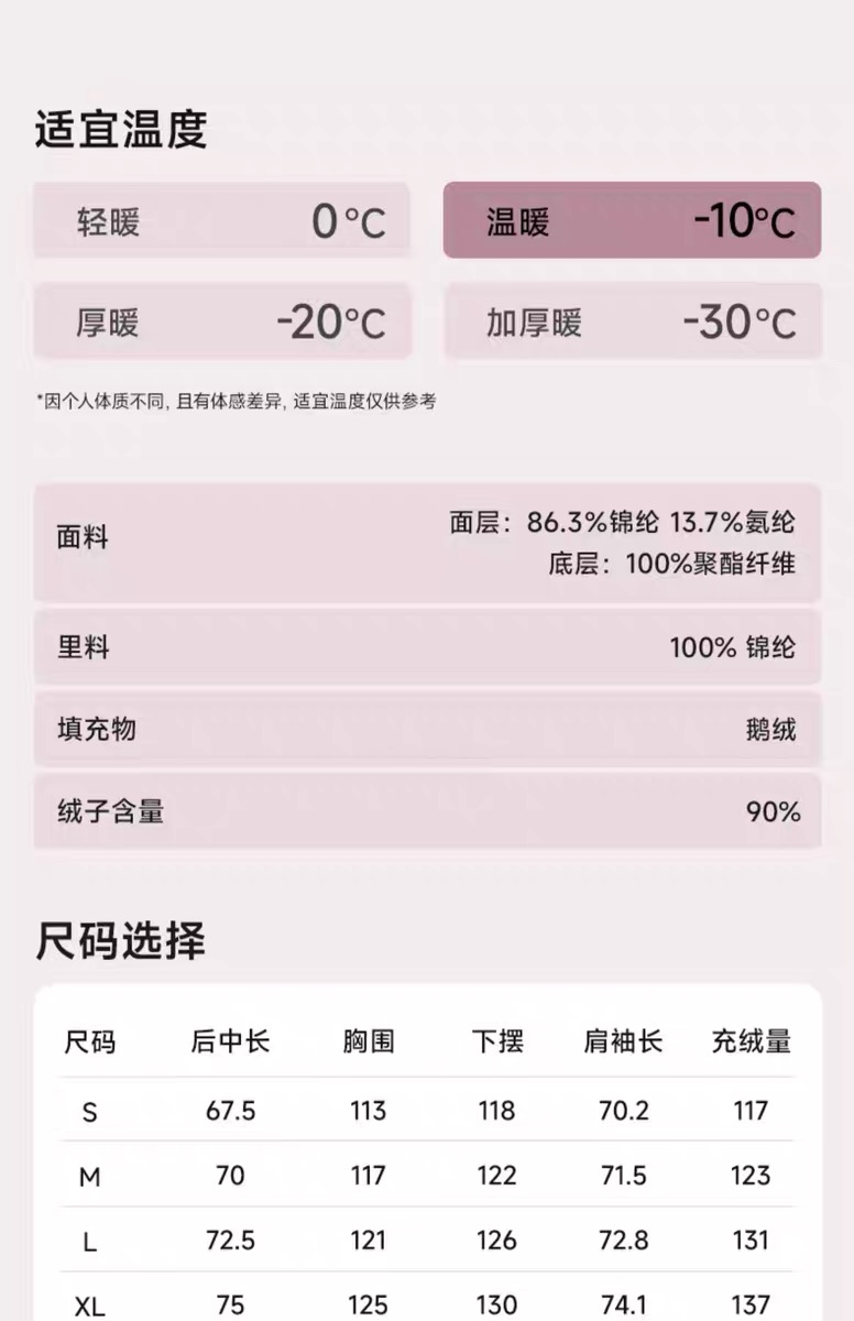 最小码充绒量117g【什么概念?就是你拿到手不忍苛责它的价格】