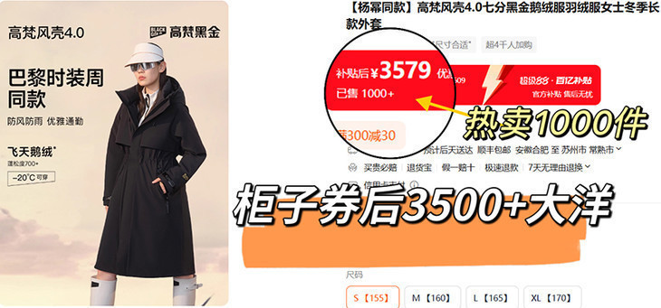 款①:半个娱乐圈都在穿的高F鹅绒服!4.0巴黎法式高定风衣款!