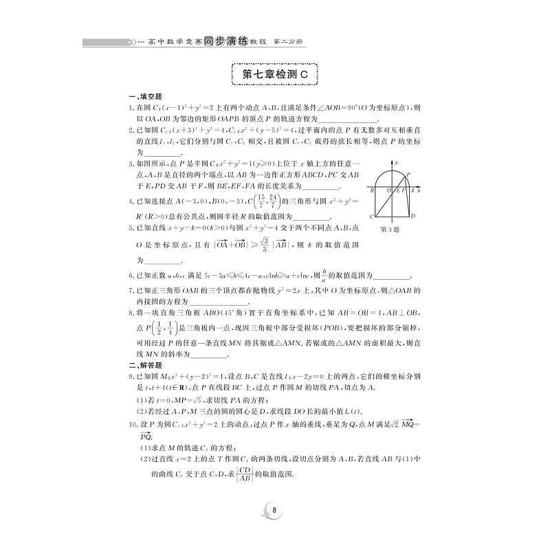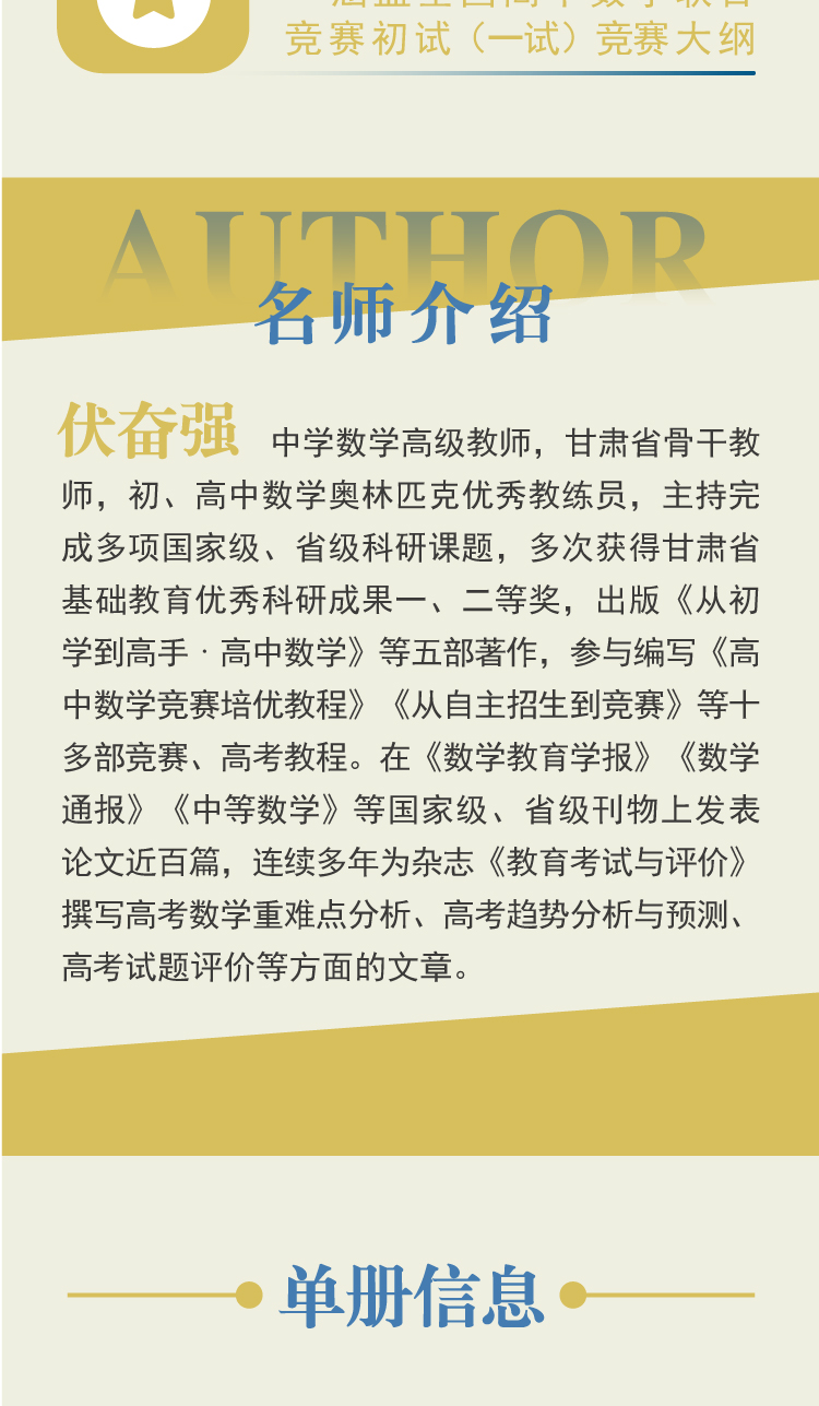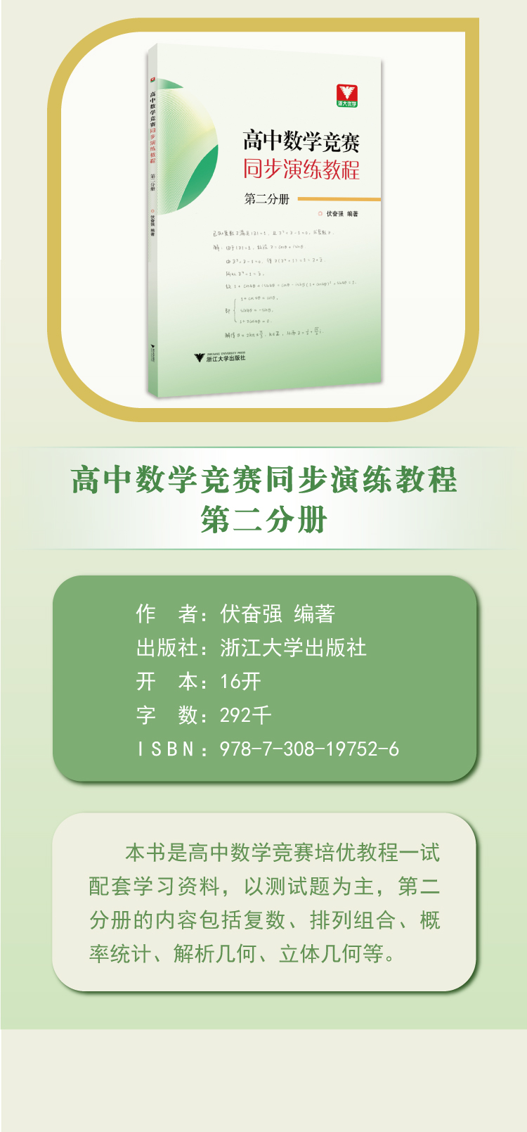 本书是高中数学竞赛培优教程一试配套学习资料,以测试题为主,第二分册的内容包括复数、排列组合、概率统计、解析几何、立体几何等。