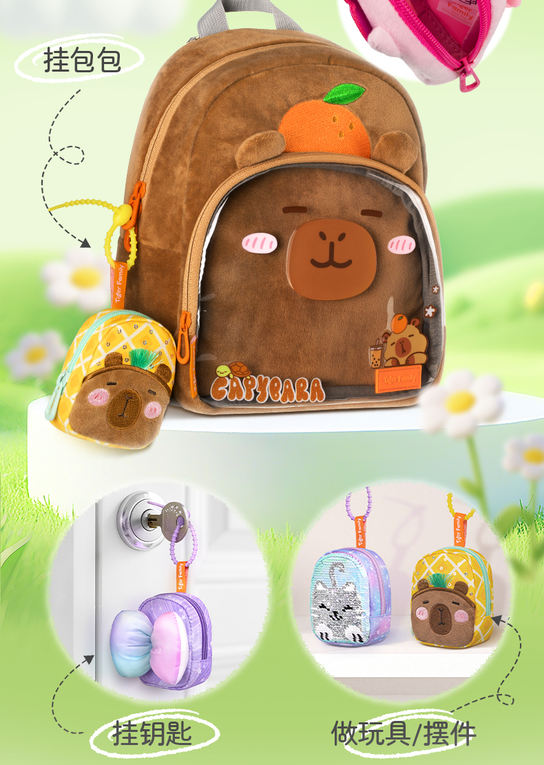 tigerfamily虎米小马宝莉书包卡皮巴拉钥匙扣包卡通随身便携挂饰