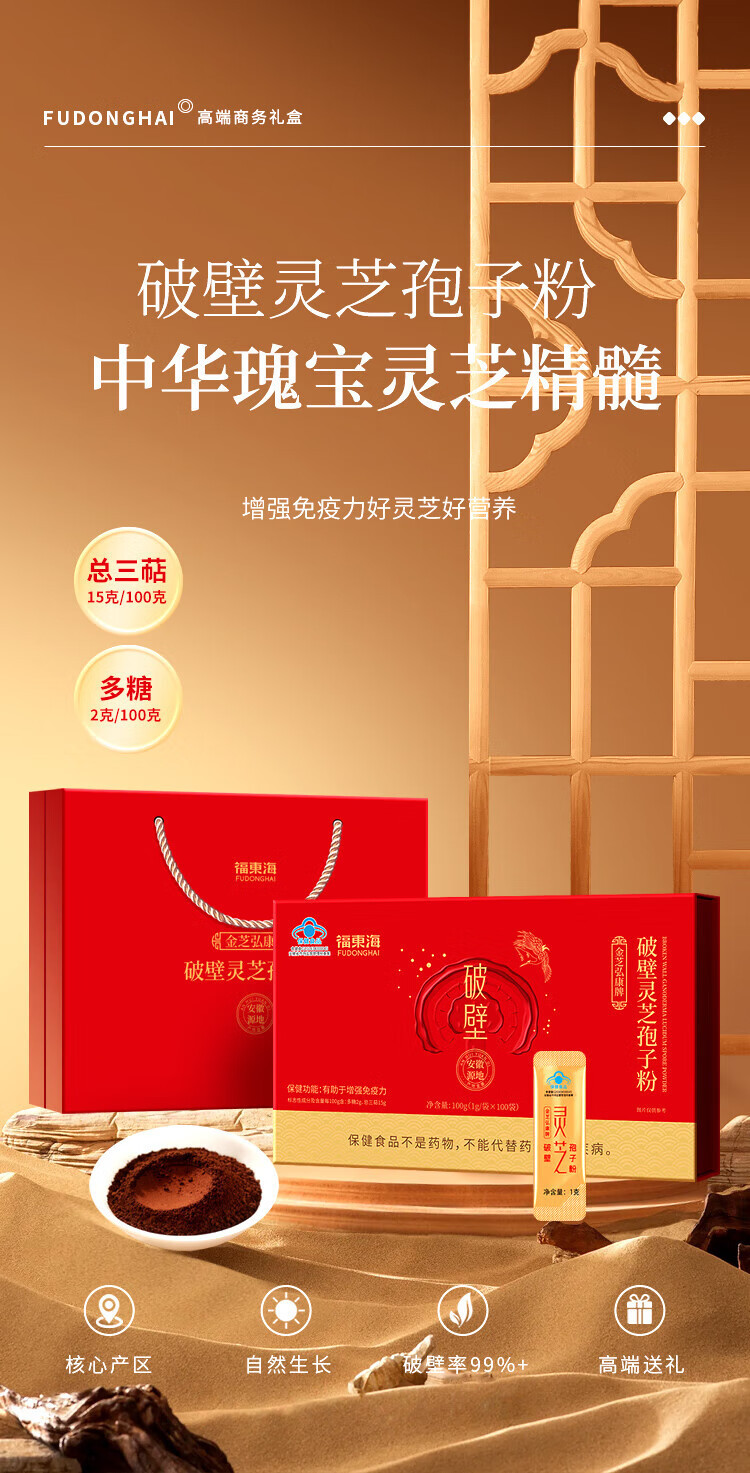 配手提袋!【选择对的灵芝孢子粉,我的健康我来呵护!】金芝弘康破壁灵芝孢子粉100克礼盒装 灵芝提取物小蓝帽送礼 中秋国庆年货好礼-QA