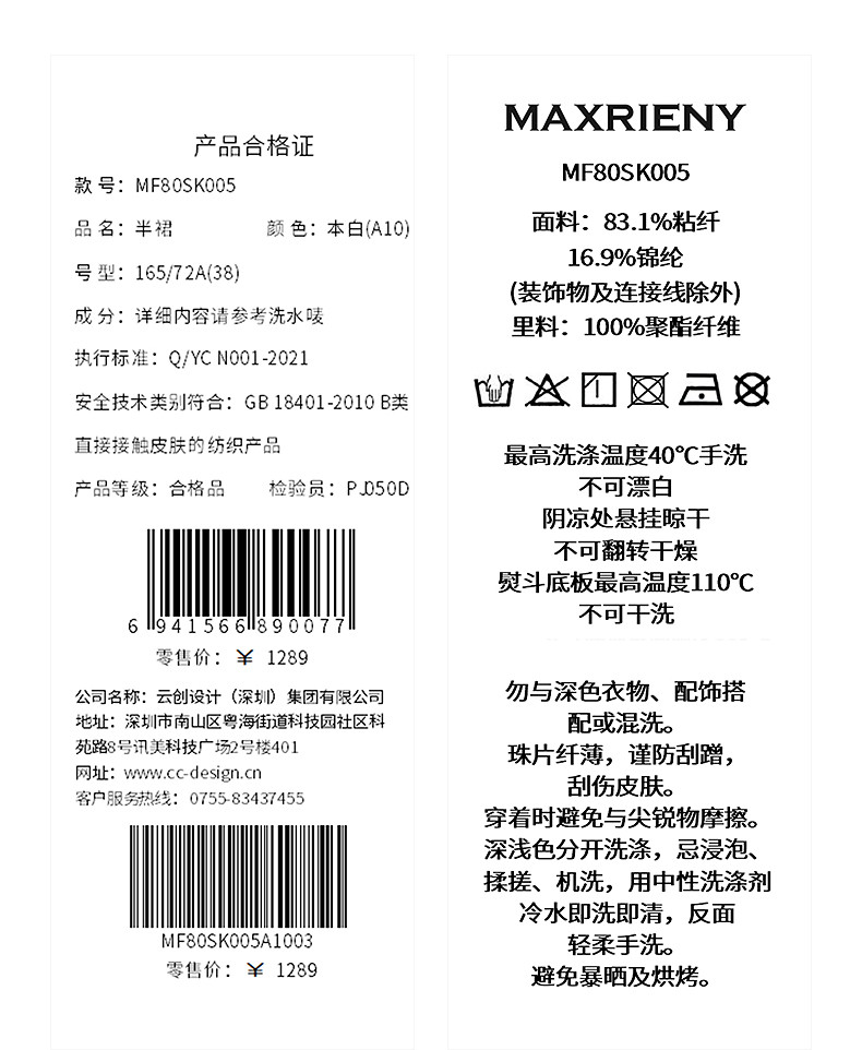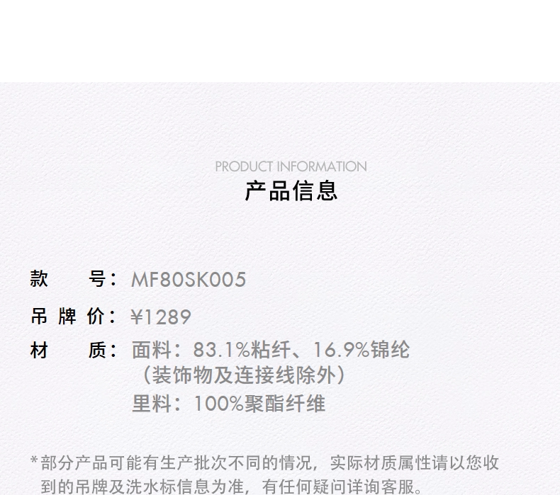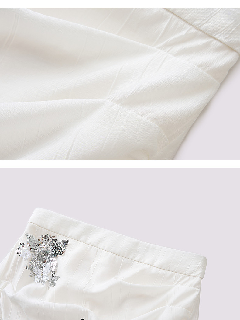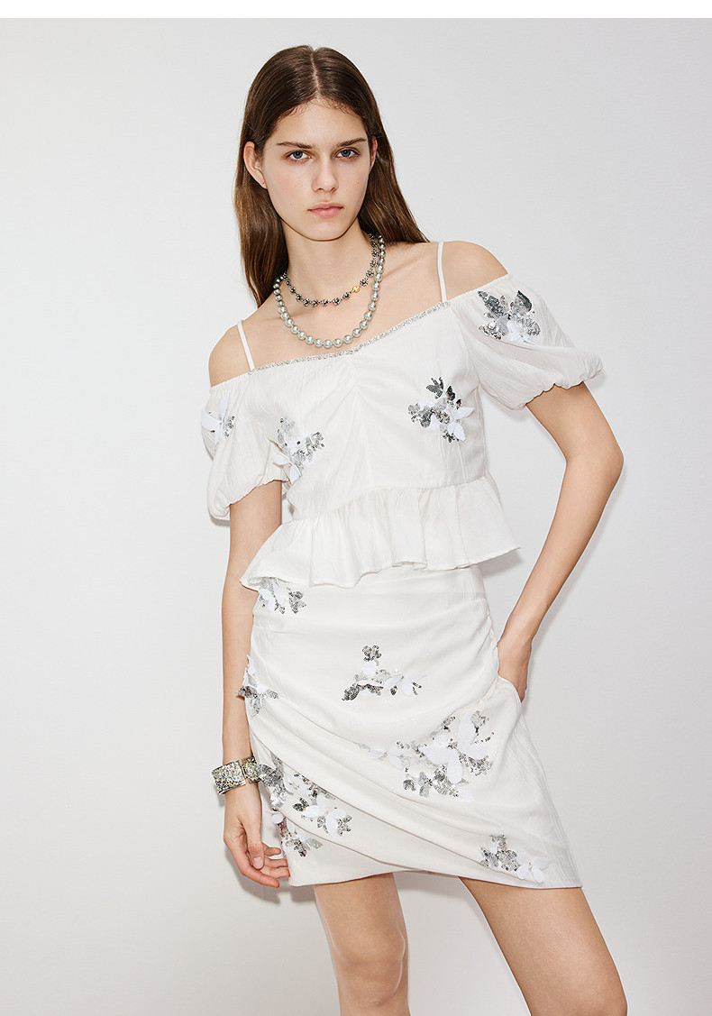 MAXRIENY立体刺绣半身裙2026年春季新款半裙修身收腰亮片白色裙子(货号:MF80SK005)
