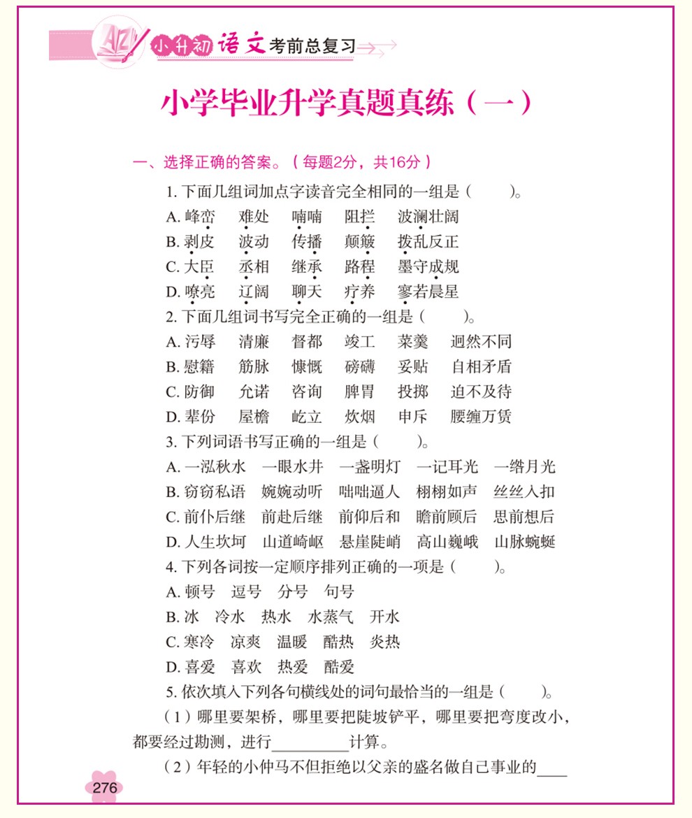 小升初语文考前总复习 语文考前冲刺辅导真题模拟