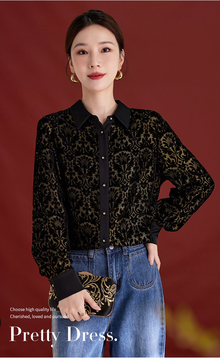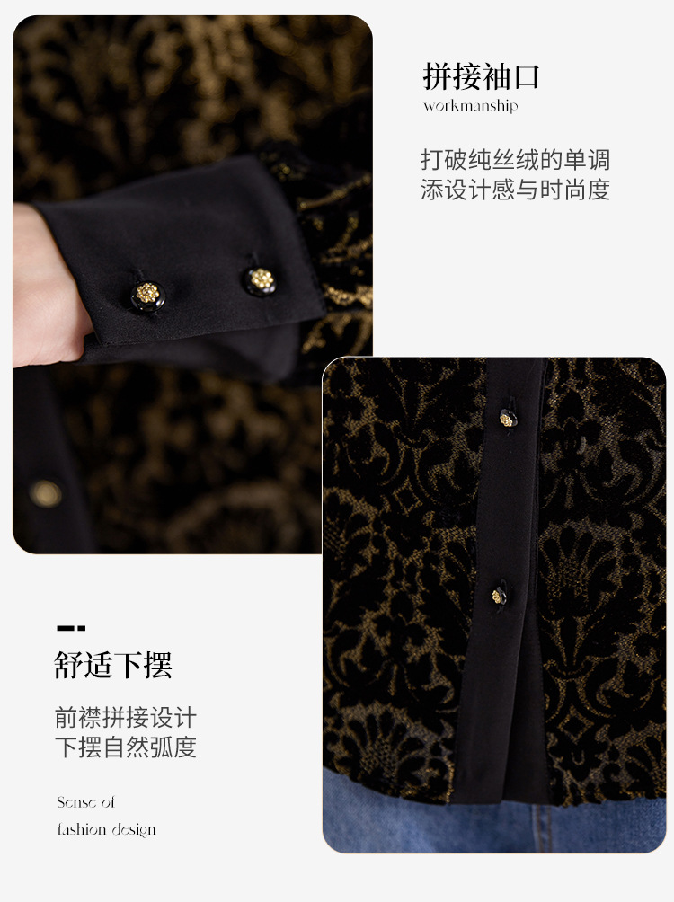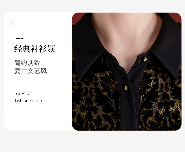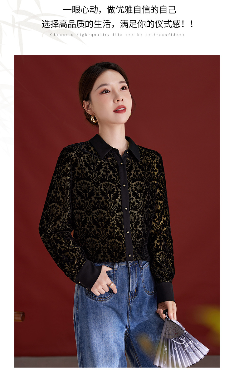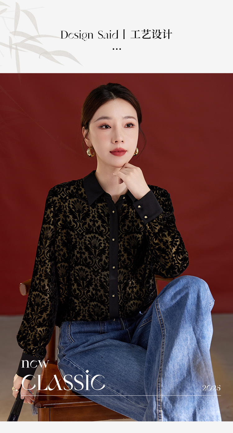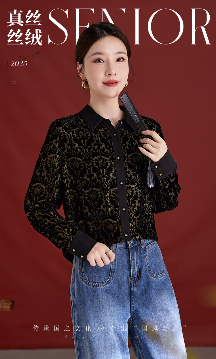 QS2025真丝烧花丝绒衬衫上衣女高级感轻奢时尚阳气宽松减龄长袖1857