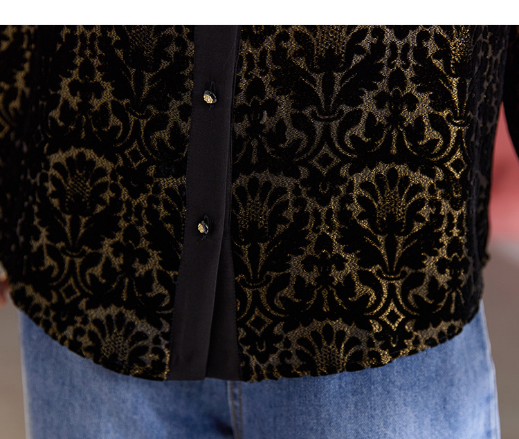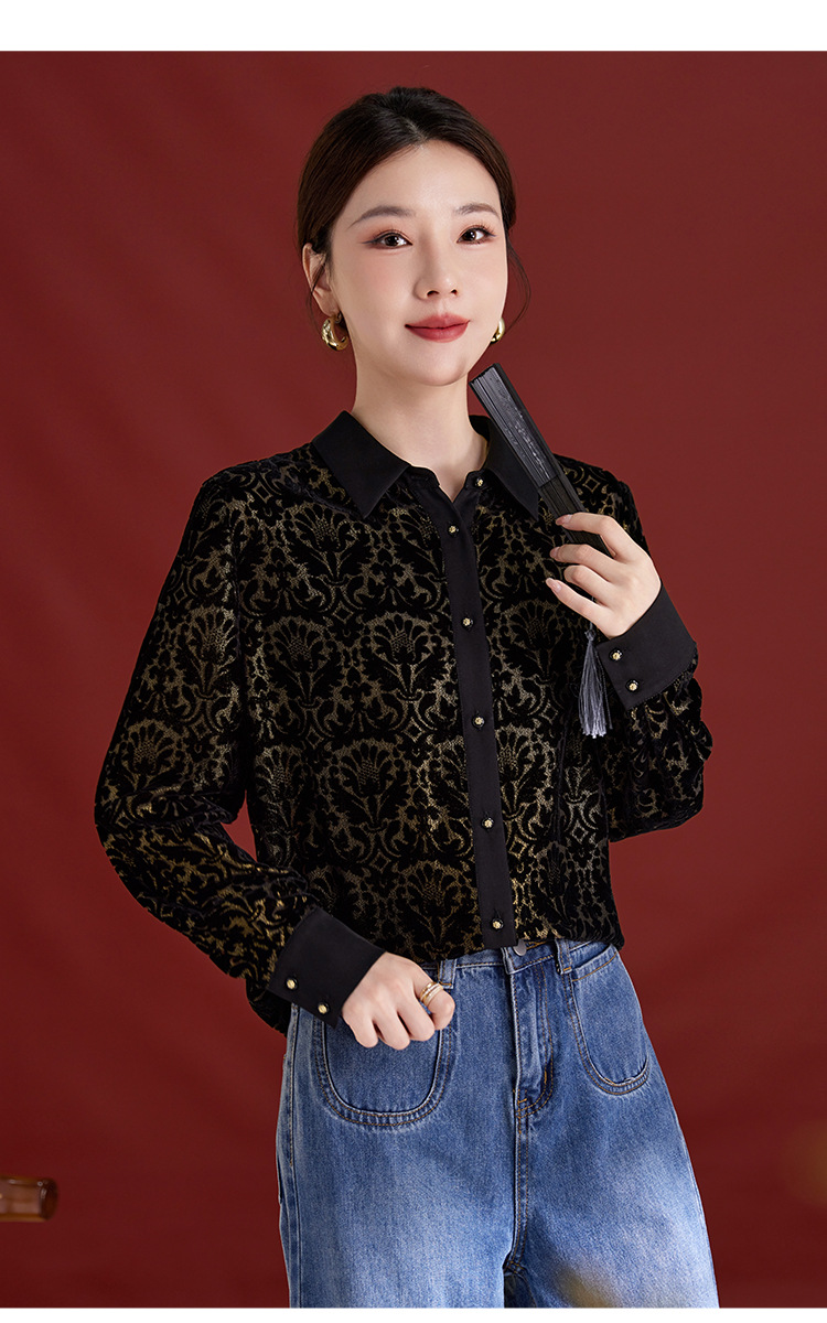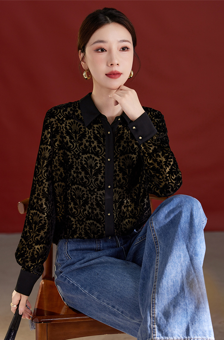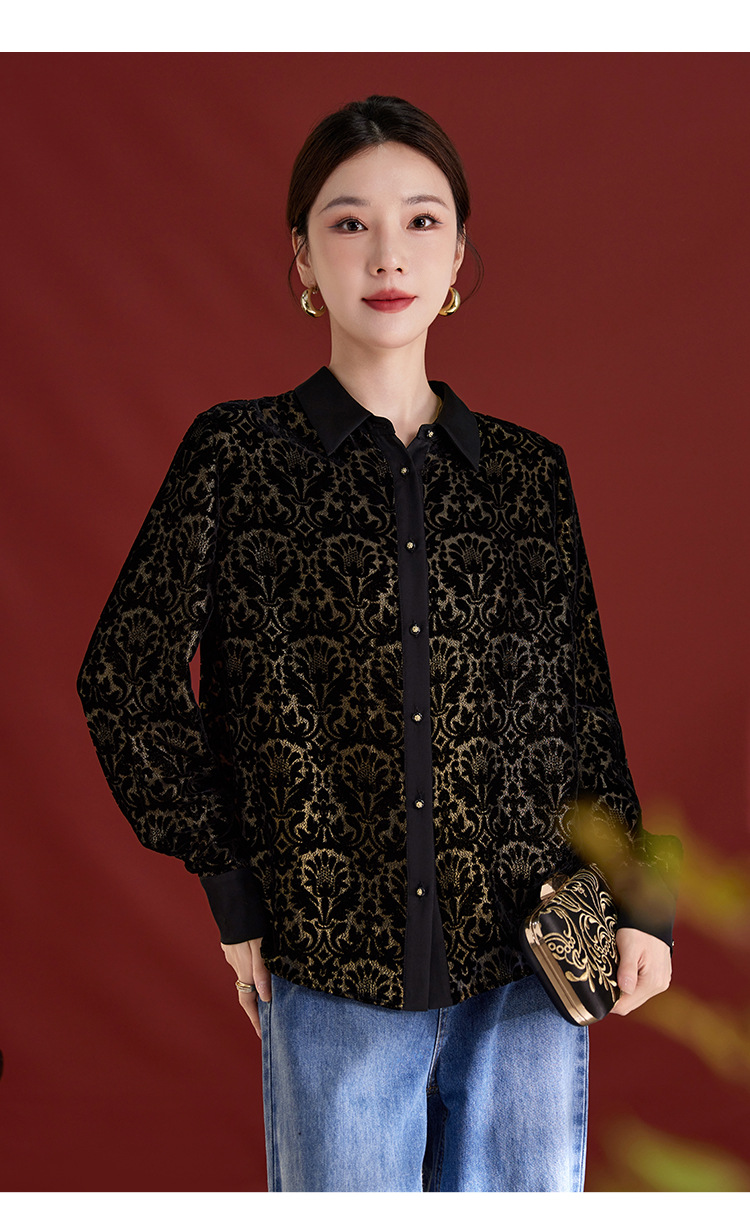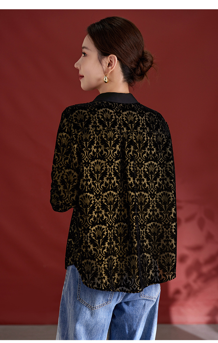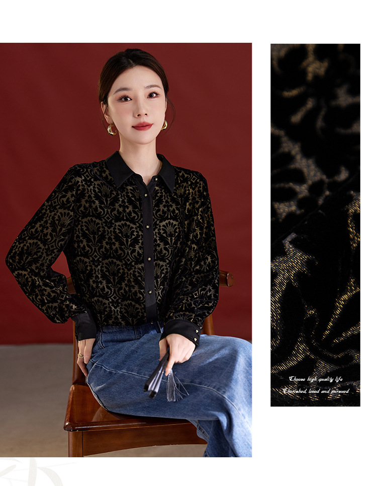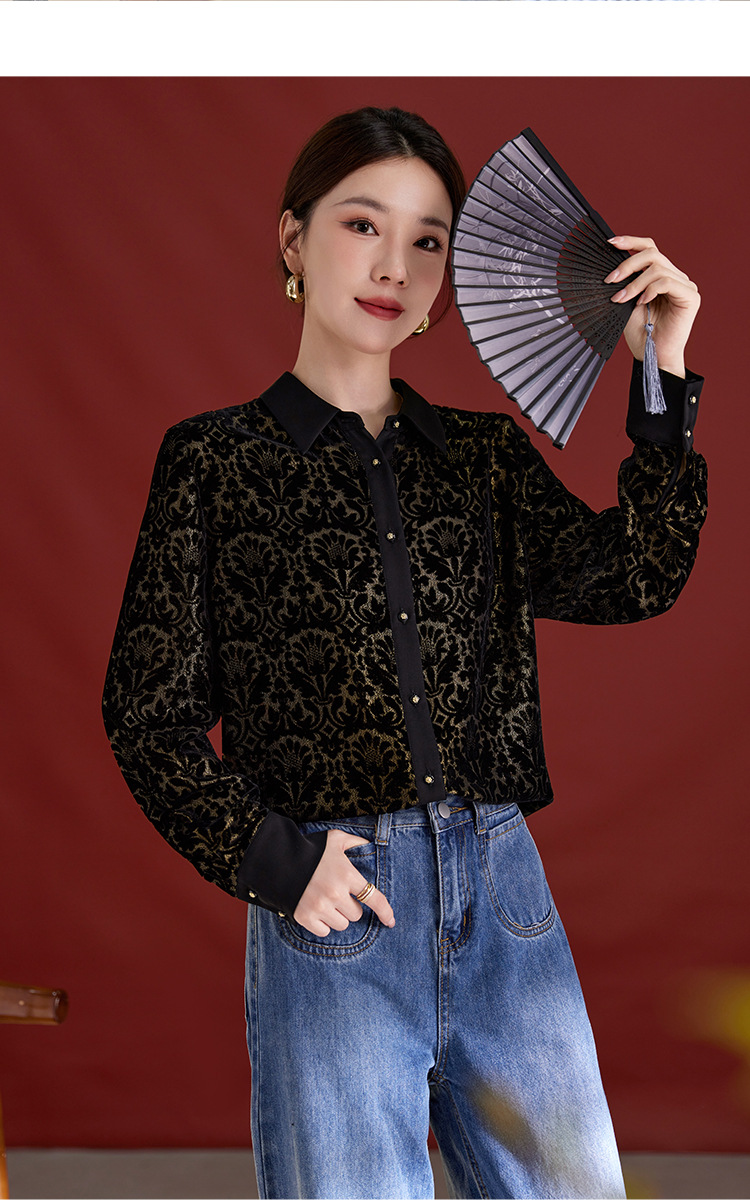 QS2025真丝烧花丝绒衬衫上衣女高级感轻奢时尚阳气宽松减龄长袖1857