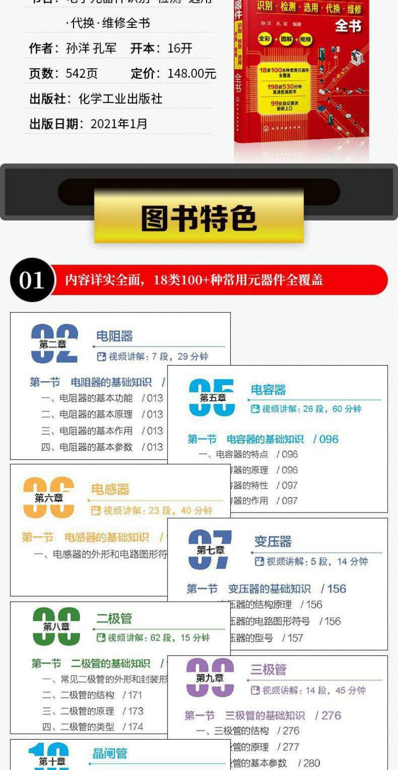 电子元器件识别检测选用代换维修全书 万用表电子元器件自学宝典