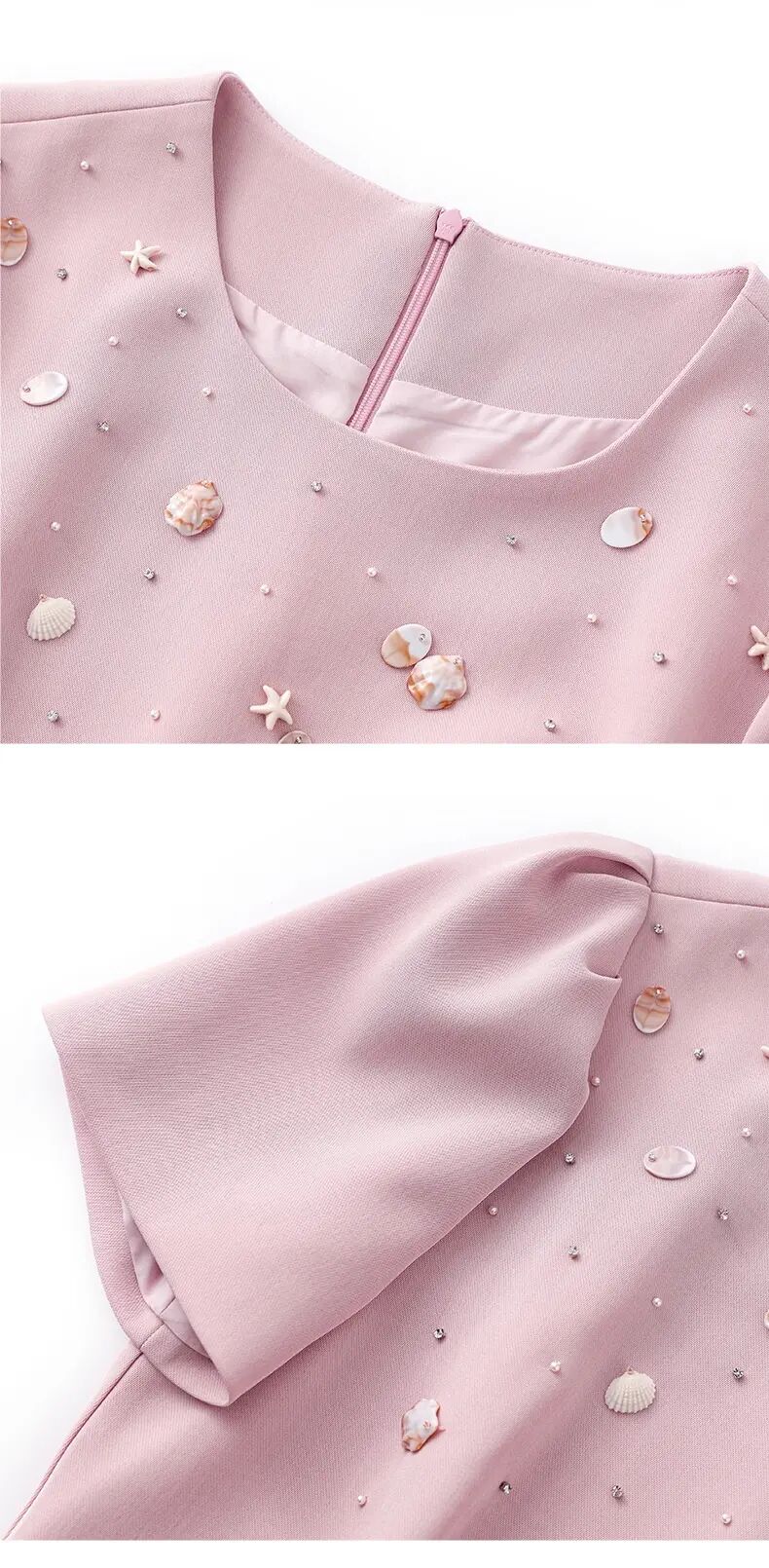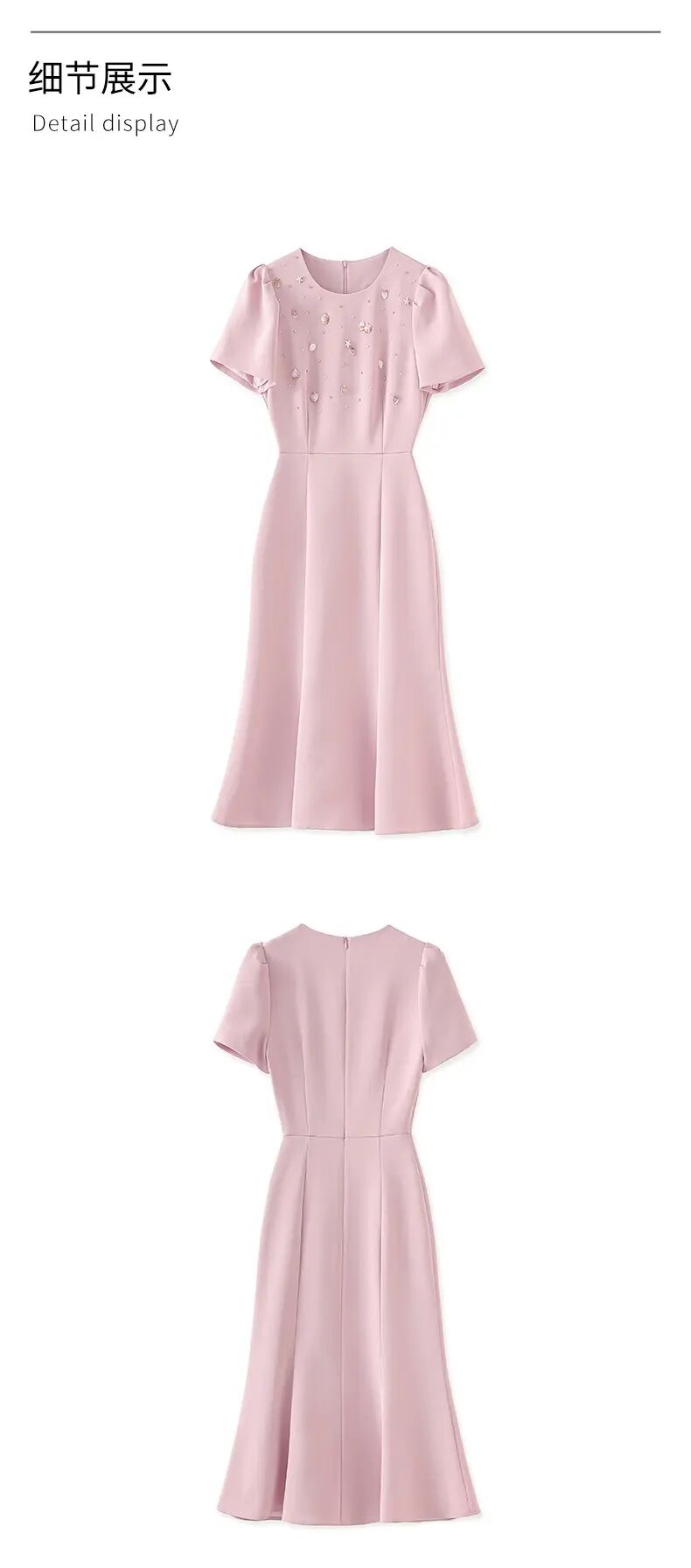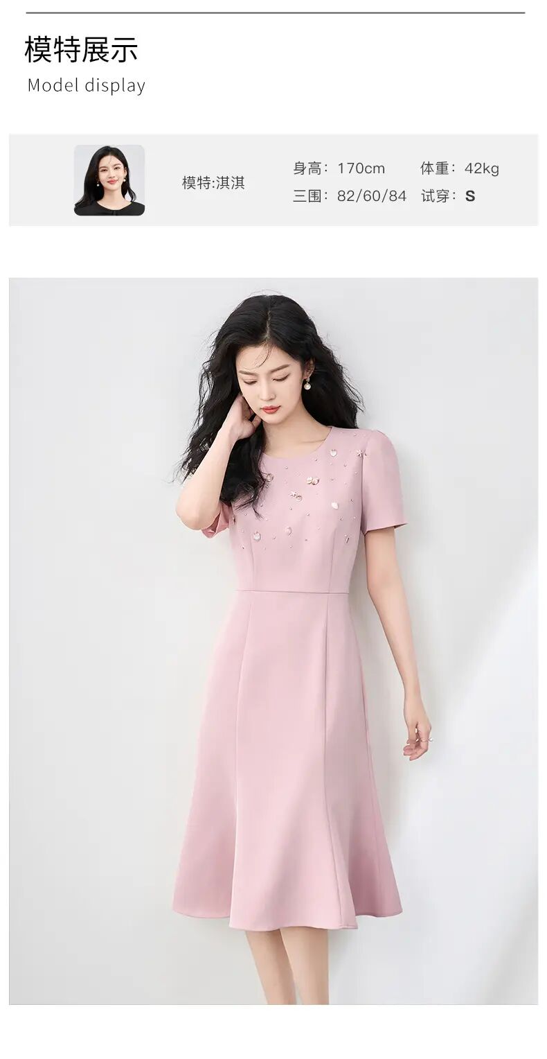 【高货wl】全新升级【铂金会员330/天猫439/差价109】(01031) 洛诗琳轻奢重工钉钻贝壳圆领鱼尾裙时尚气质短袖连衣裙