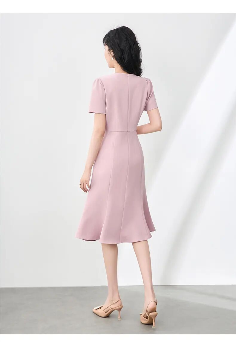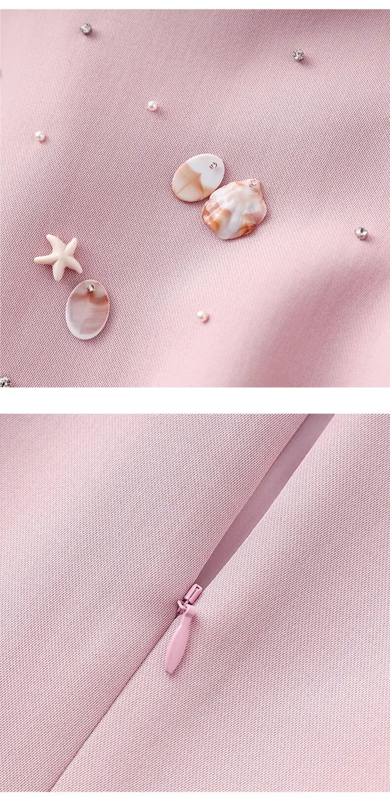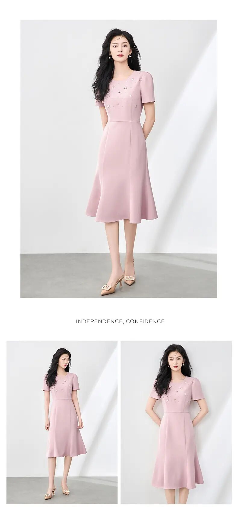 【高货wl】全新升级【铂金会员330/天猫439/差价109】(01031) 洛诗琳轻奢重工钉钻贝壳圆领鱼尾裙时尚气质短袖连衣裙