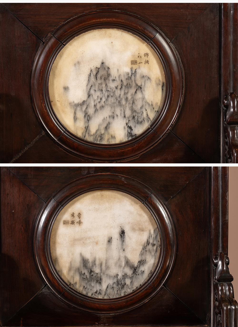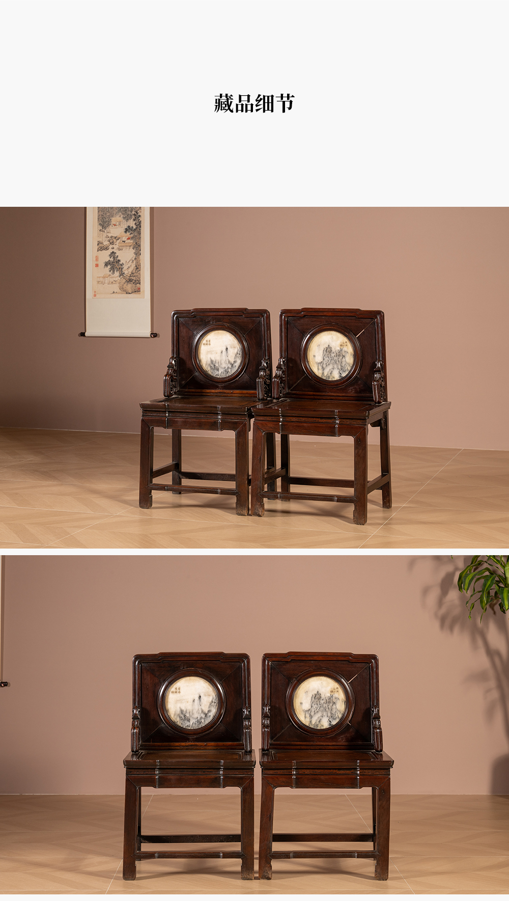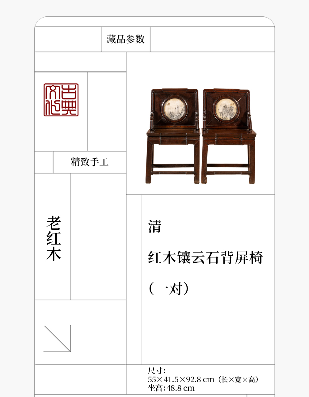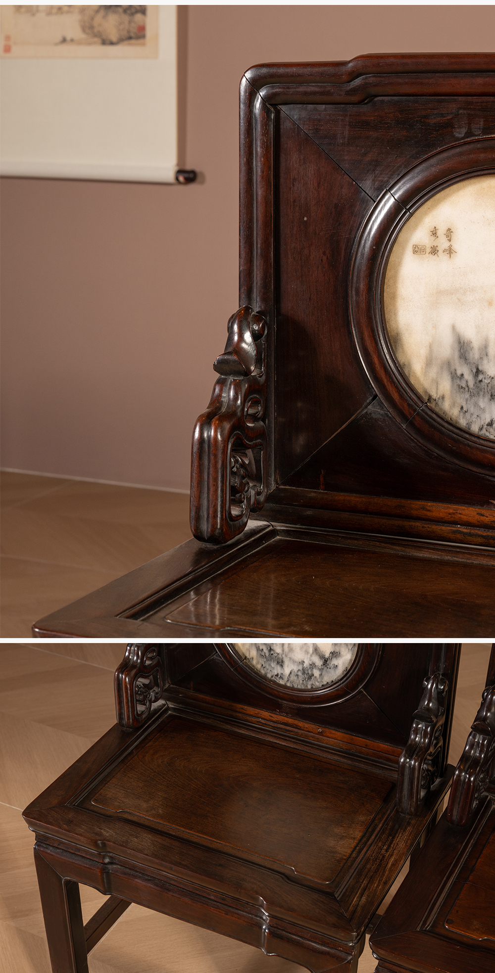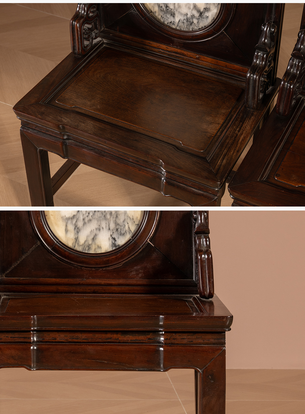 清 红木镶云石背屏椅(一对)