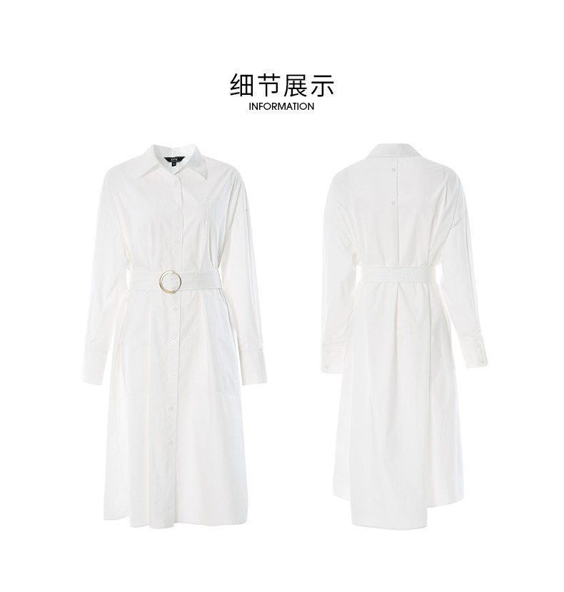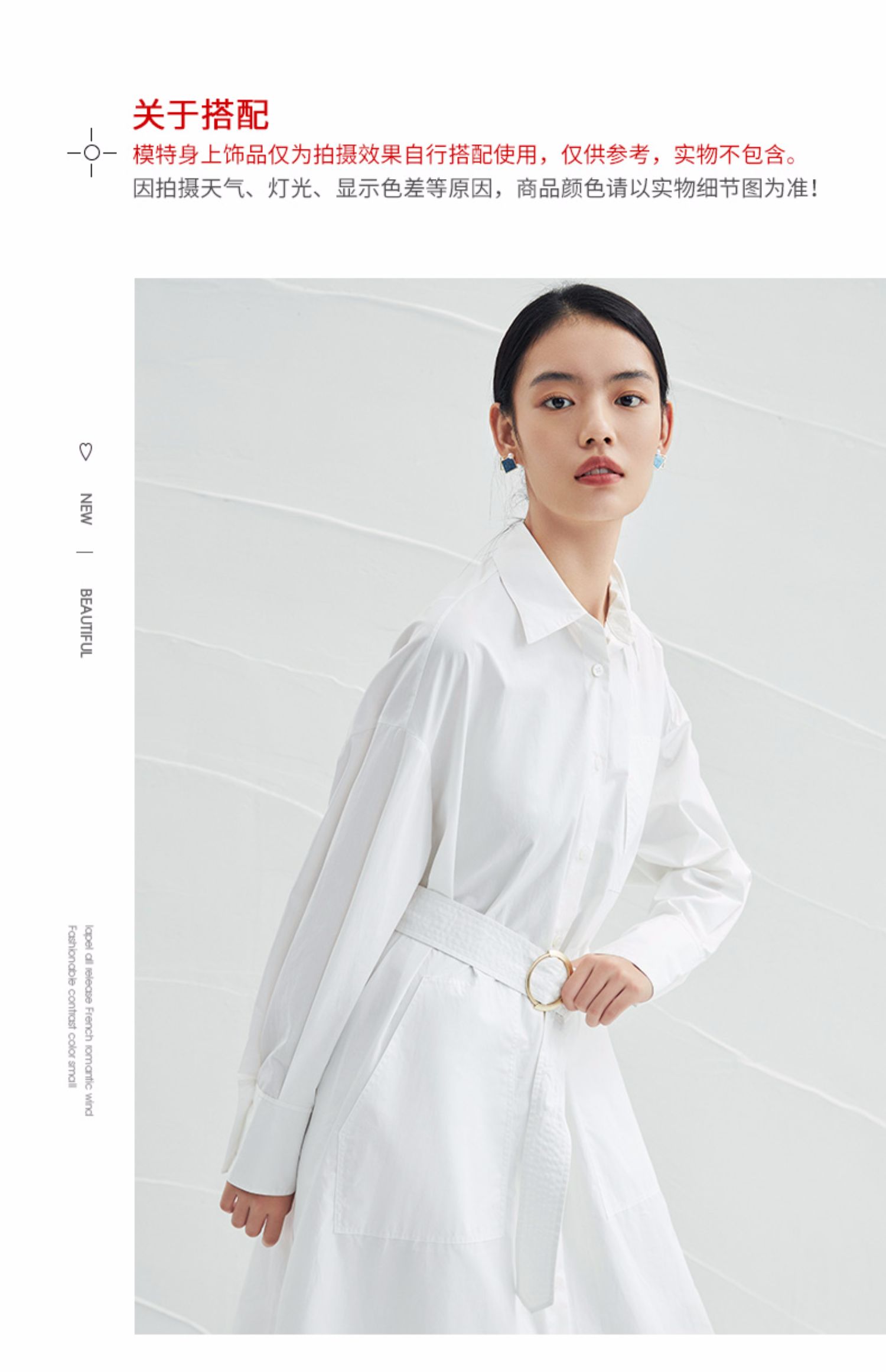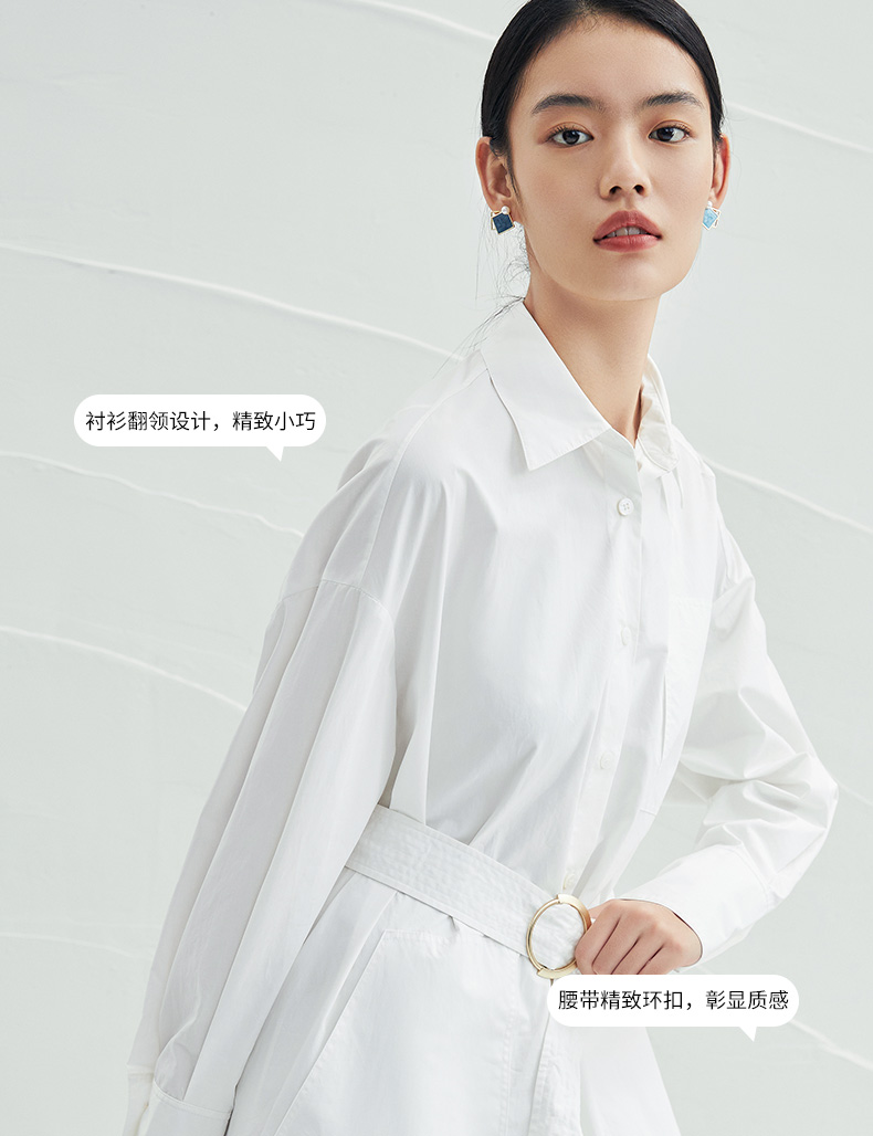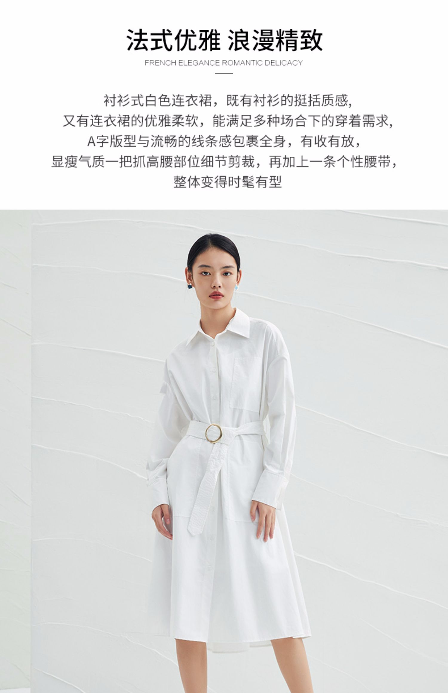 EITIE爱特爱春季新款白色收腰时尚通勤显瘦衬衫式连衣裙A2207917