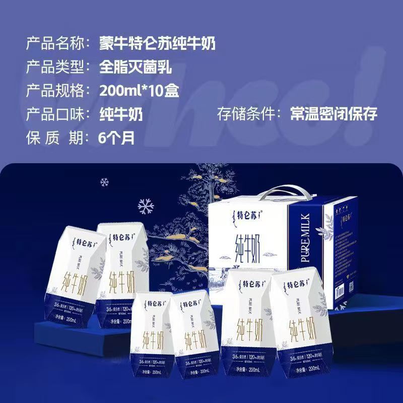 特仑苏纯牛奶 200ml*10盒/箱 醇正营养 限定产地