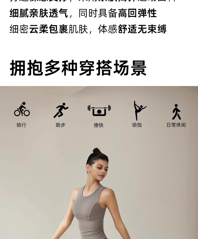 跃牌【周游世界系列】夏季新品运动内衣兰精莫代尔螺纹瑜伽内衣固定胸垫瑜伽服女 BR1570