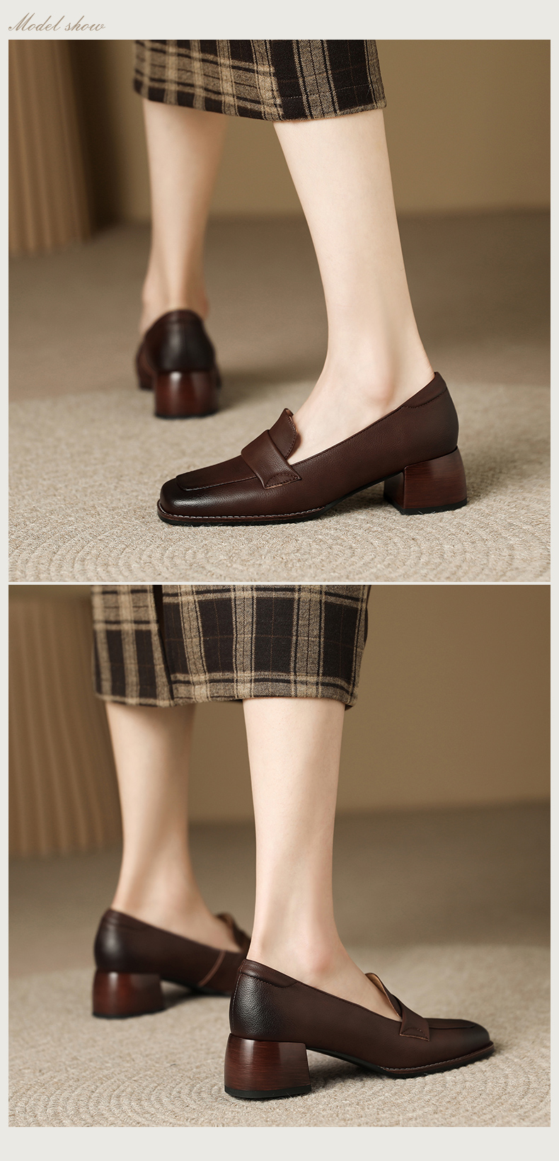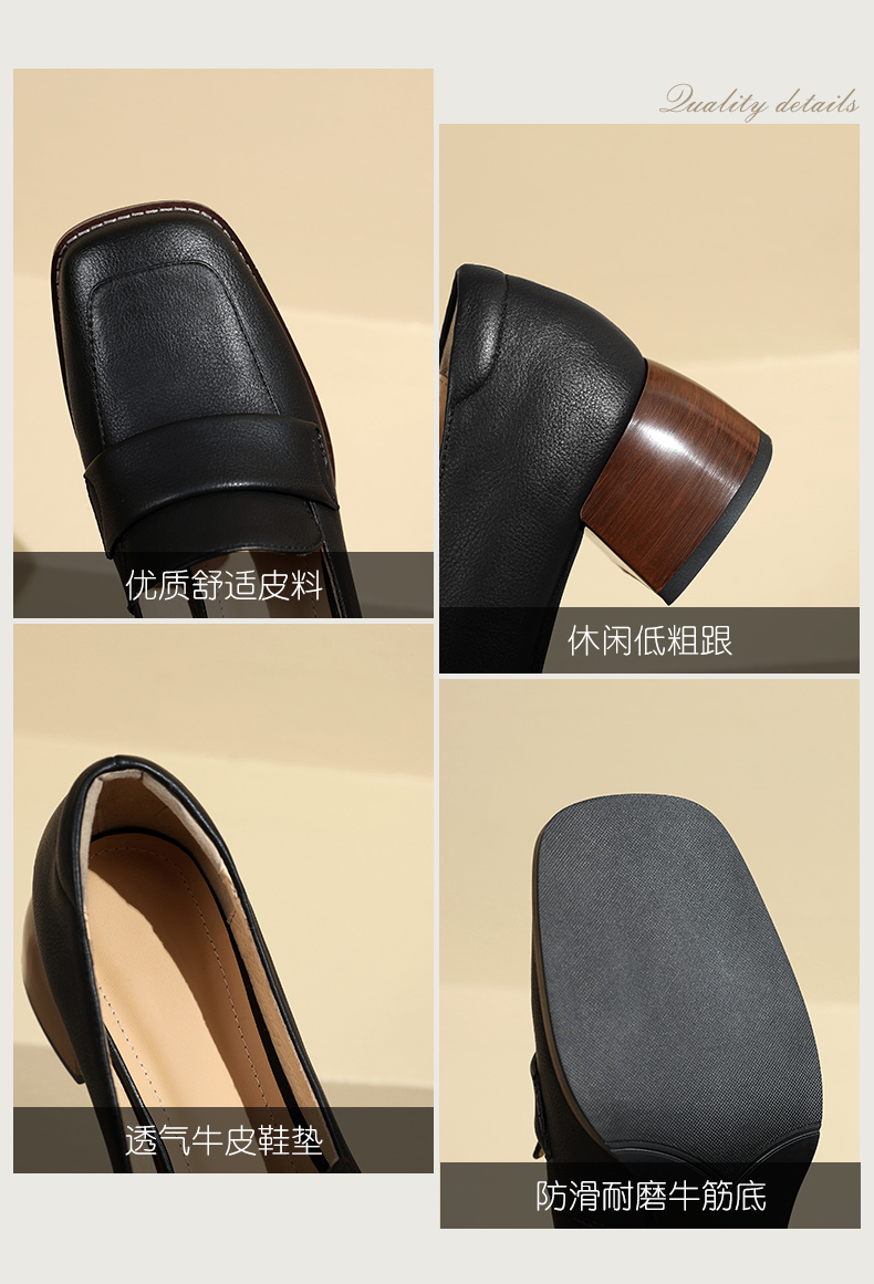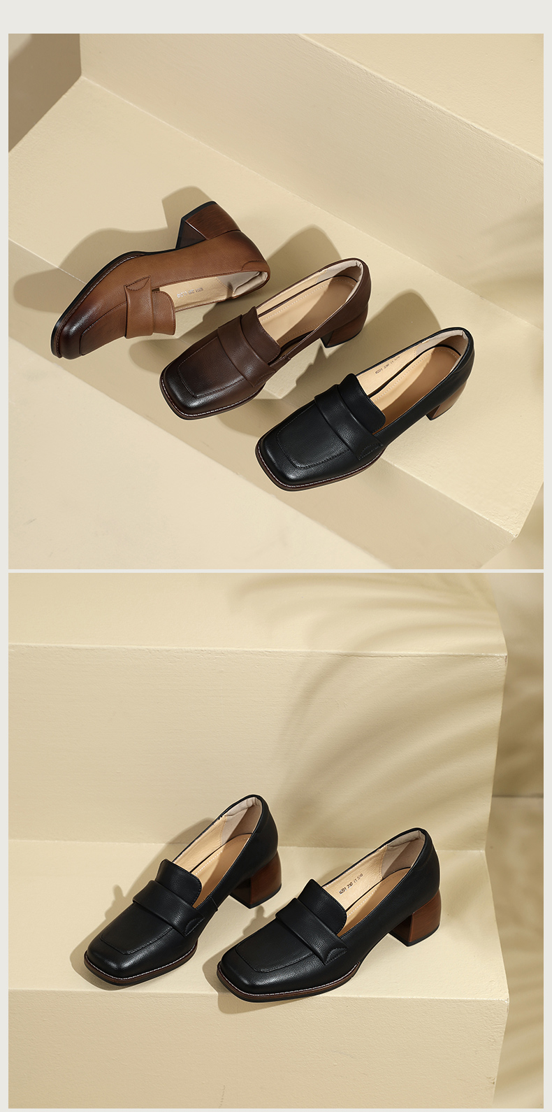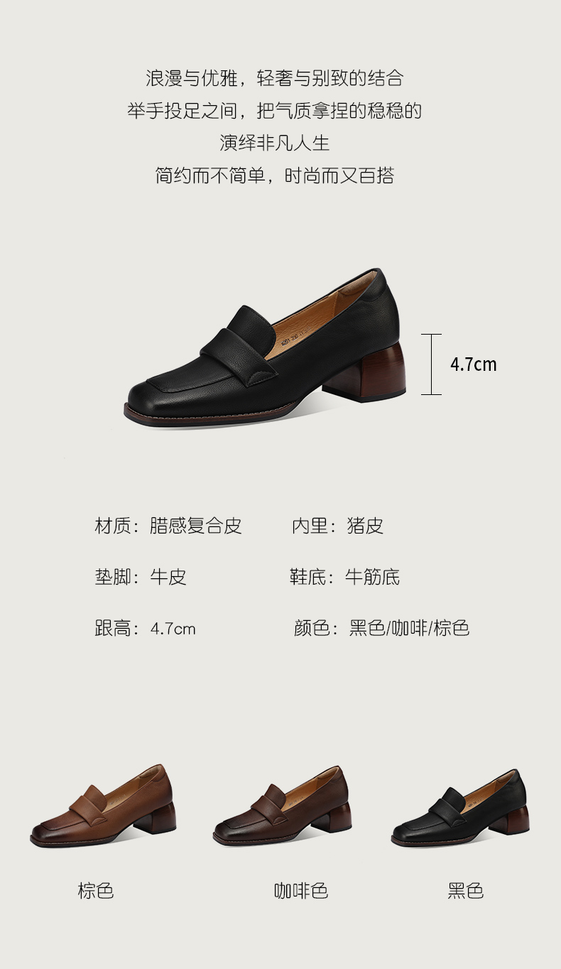 复古百搭,平头真皮粗跟单鞋BY-H201