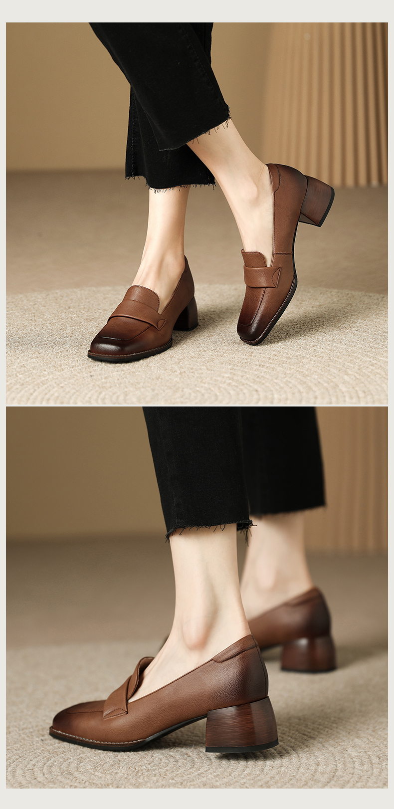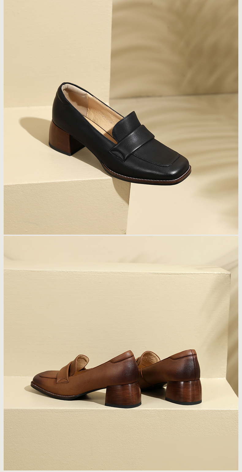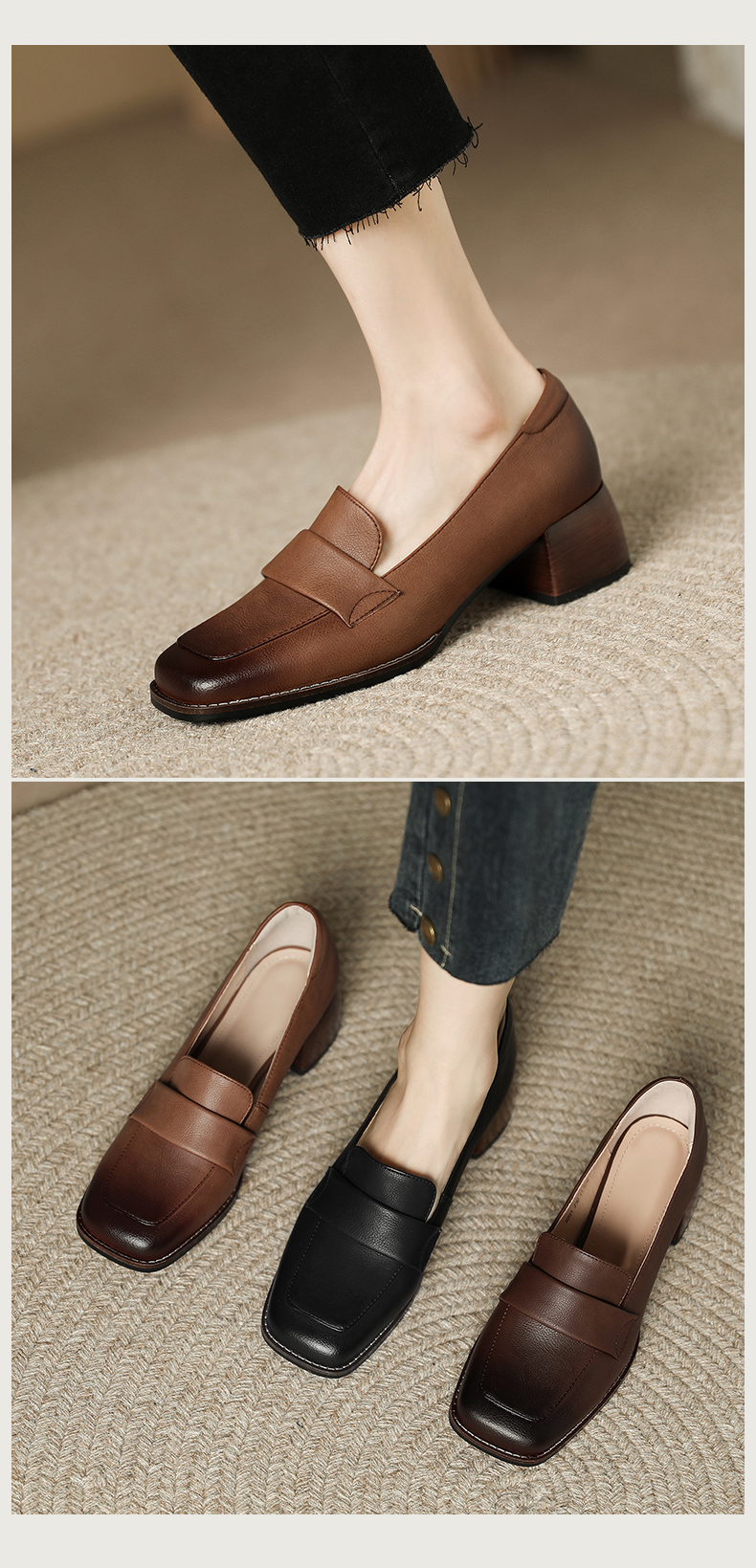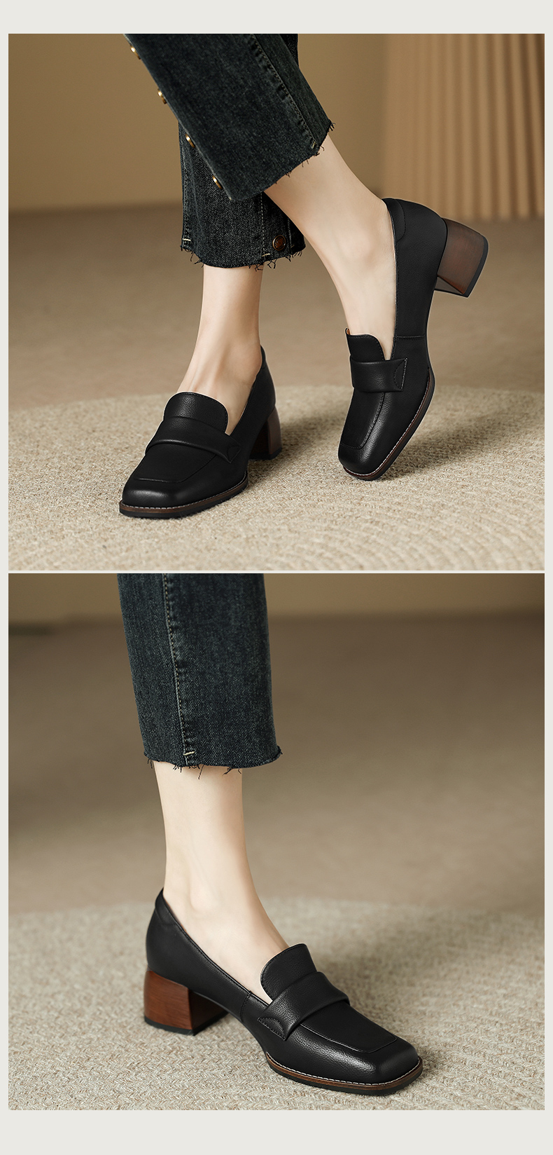 复古百搭,平头真皮粗跟单鞋BY-H201