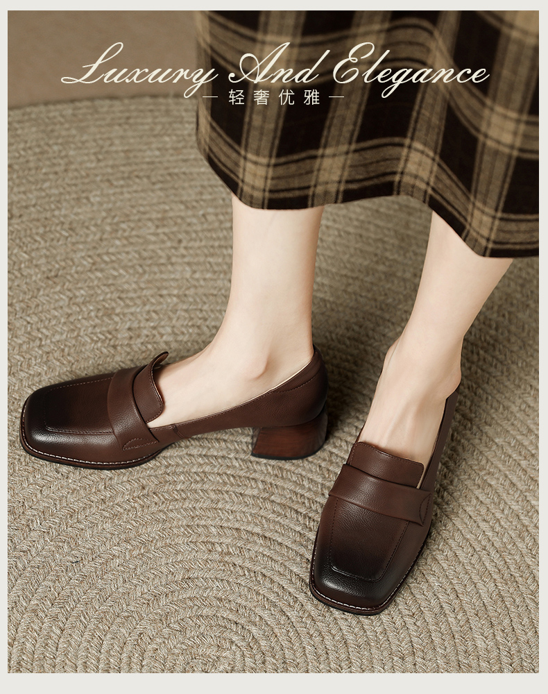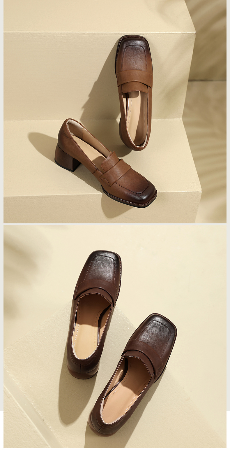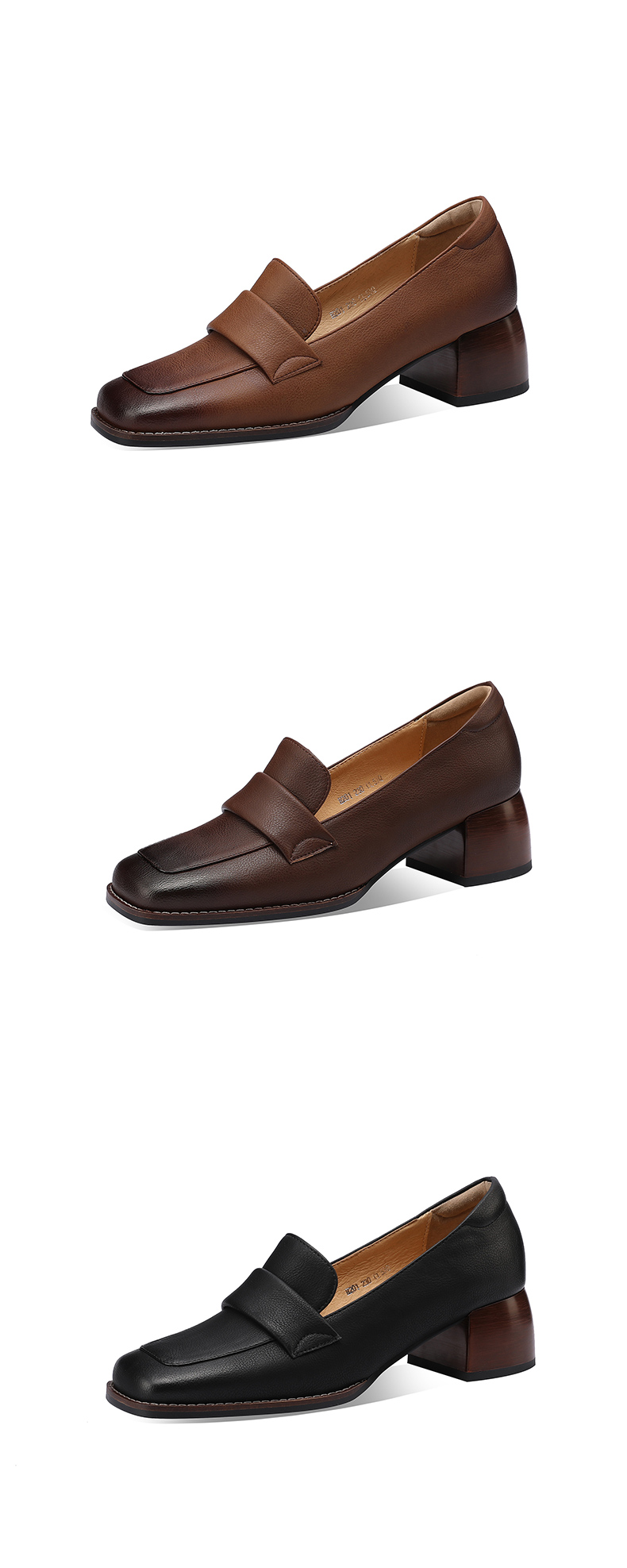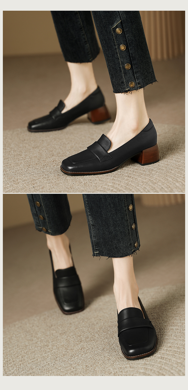 复古百搭,平头真皮粗跟单鞋BY-H201