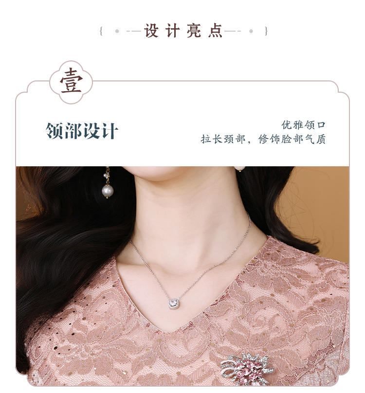 百媚生 桑蚕丝羊毛法式蕾丝拼接V领针织开衫女NS-6006-68