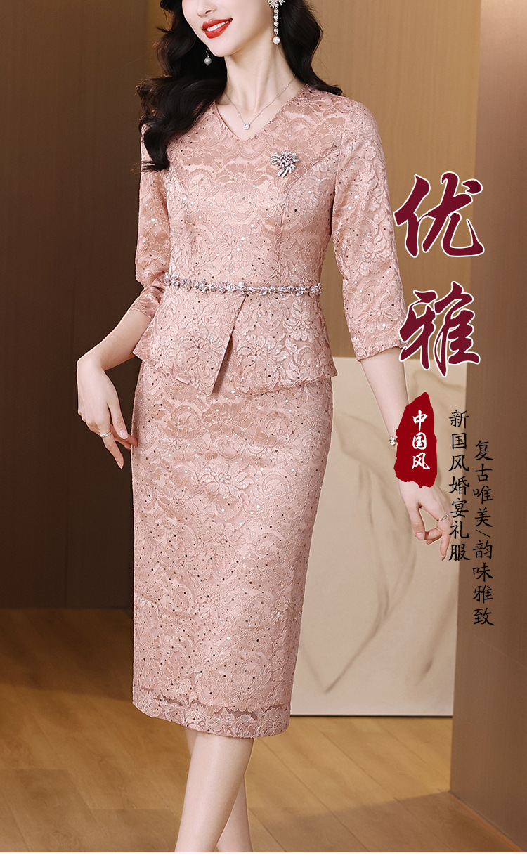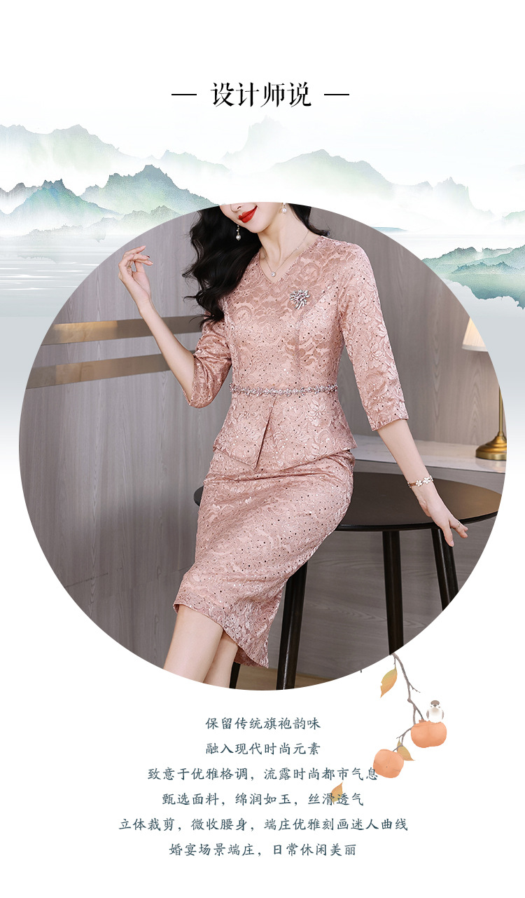 雀说秋季新款重工烫钻亮片连衣裙AL5516