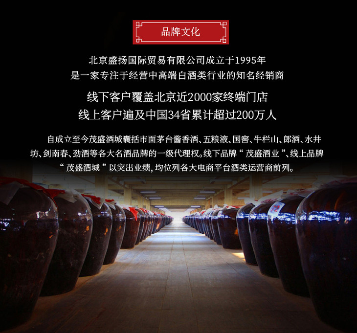 - 茂盛酒城成立于1995年,总部位于北京市朝阳区,20多年来,一直从事酒类销售,酒类批发,B2B业务,目前在北京有6家实体店,拥有各大酒类品牌的一级代理权,如京都、五粮液、国窖、汾酒、洋河、牛栏山、品牌