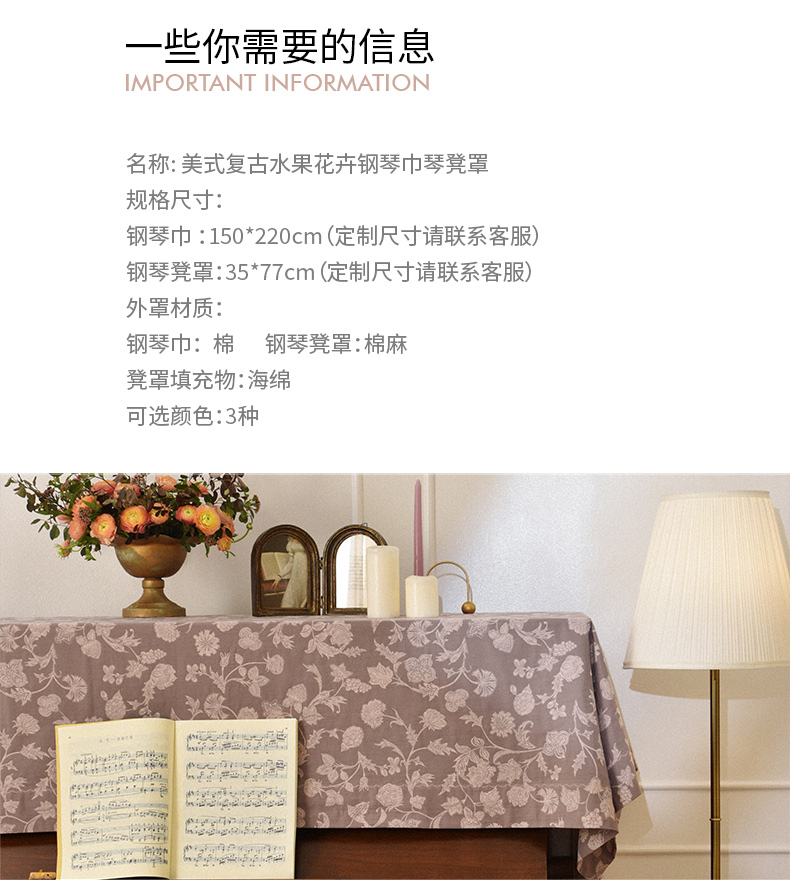 美式复古水果花卉系列钢琴巾钢琴凳罩北欧现代简约钢琴罩全罩新款钢琴巾