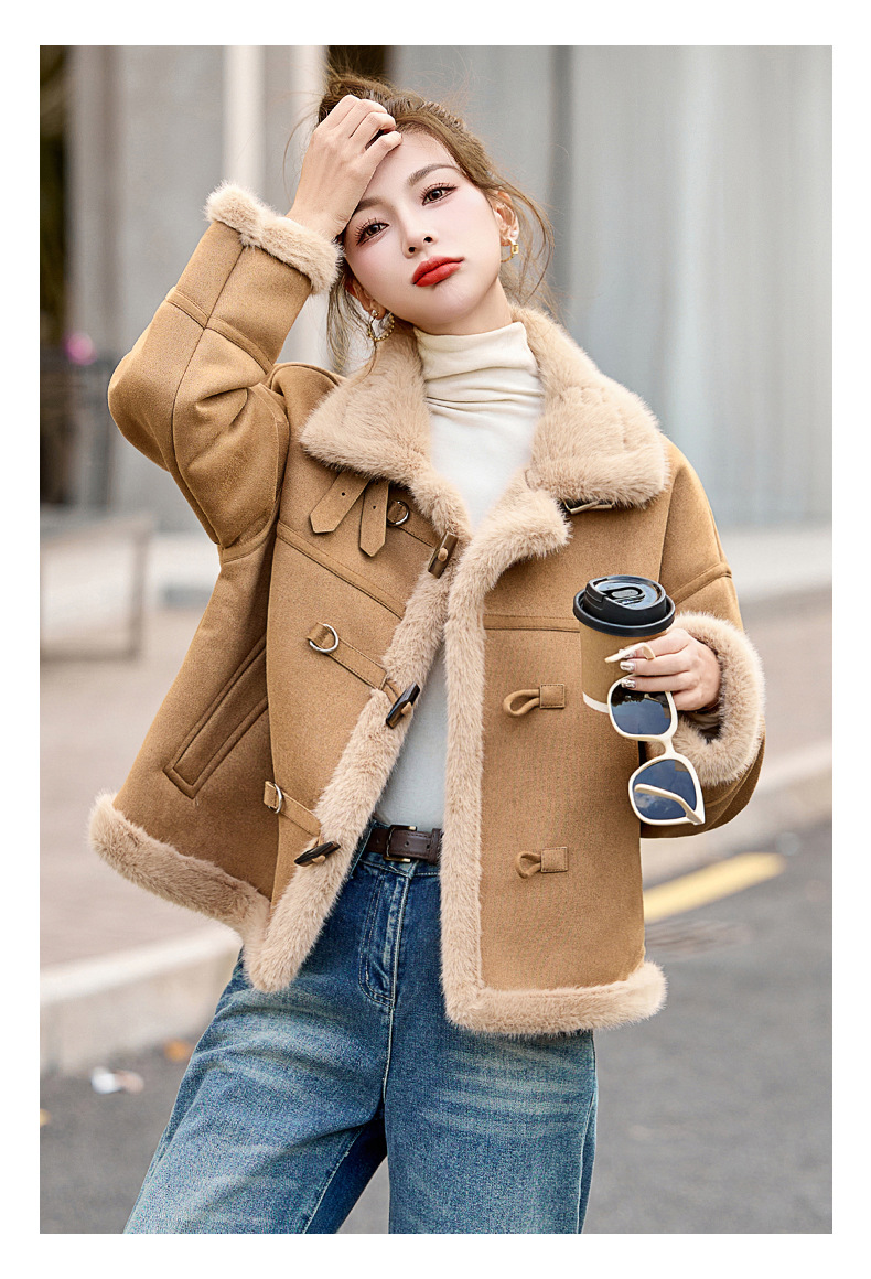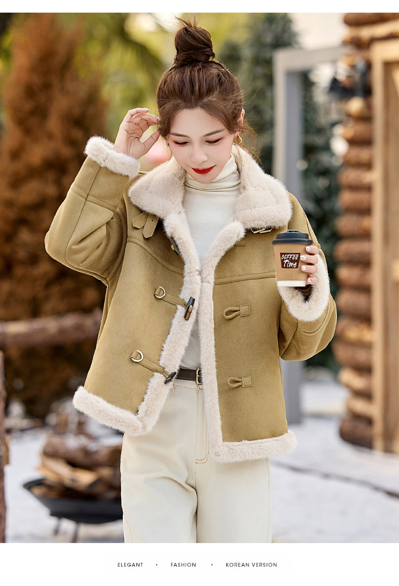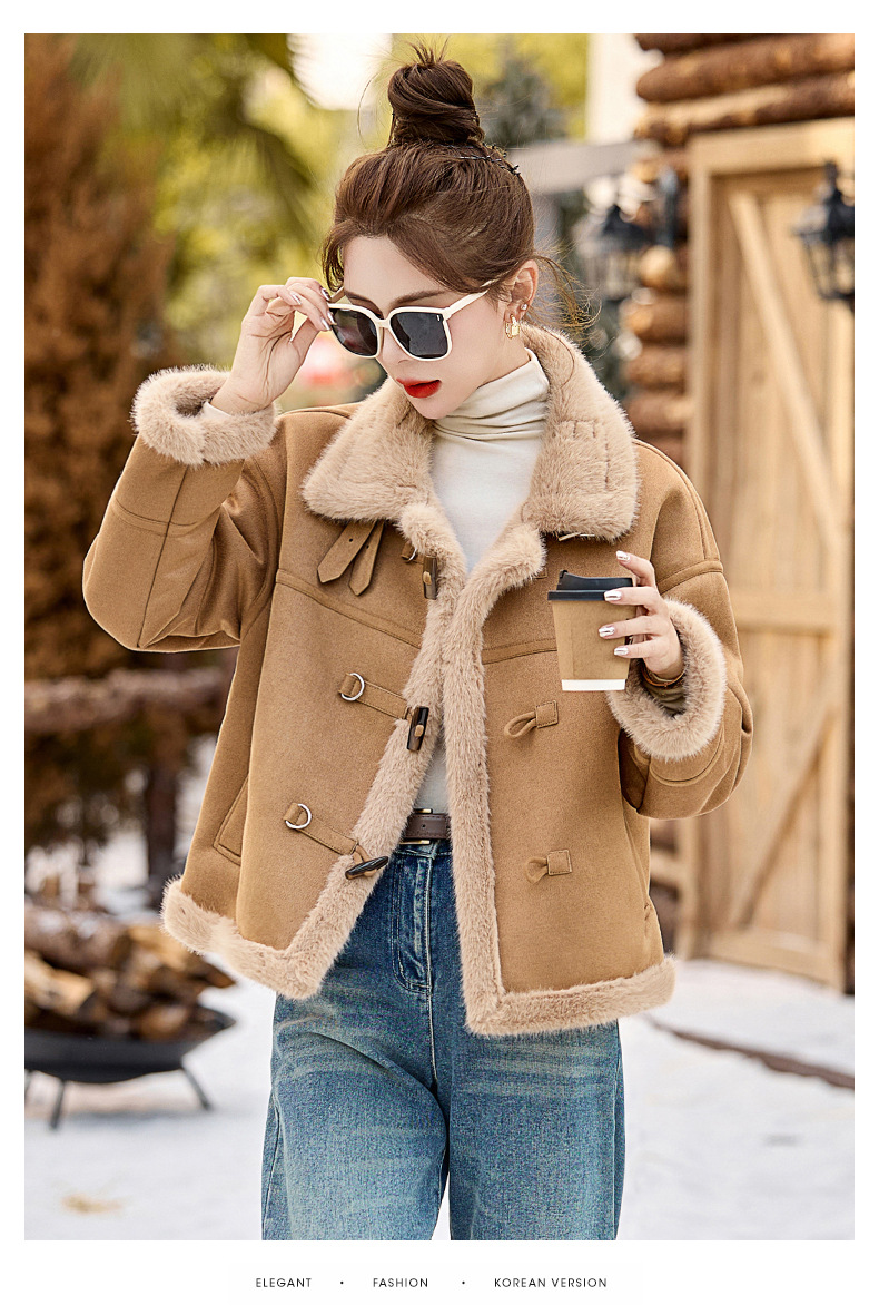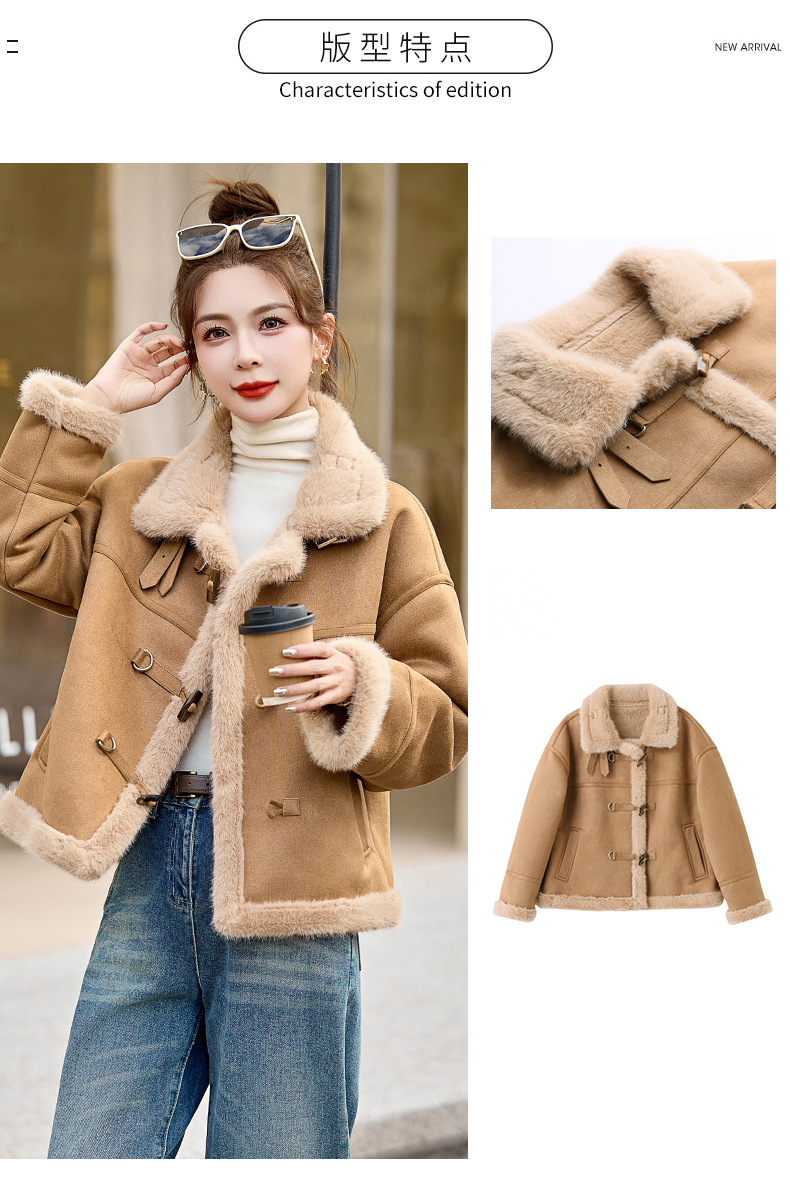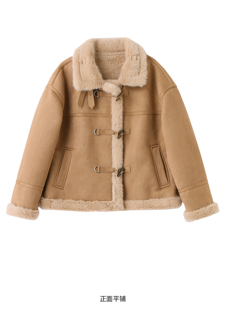 丁摩皮毛一体羊羔毛厚外套女冬2025新款小个子短款仿鹿皮绒机车服上衣ALW9937 0
