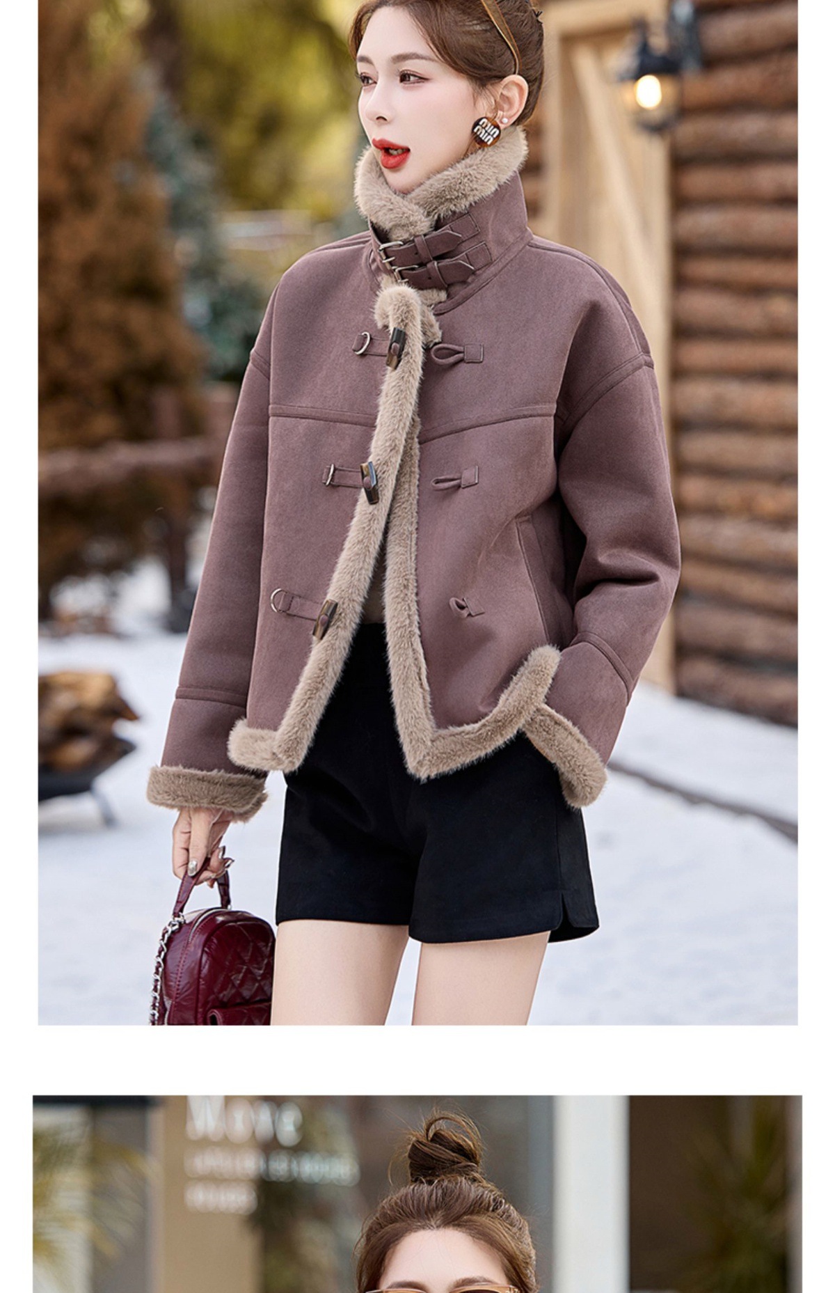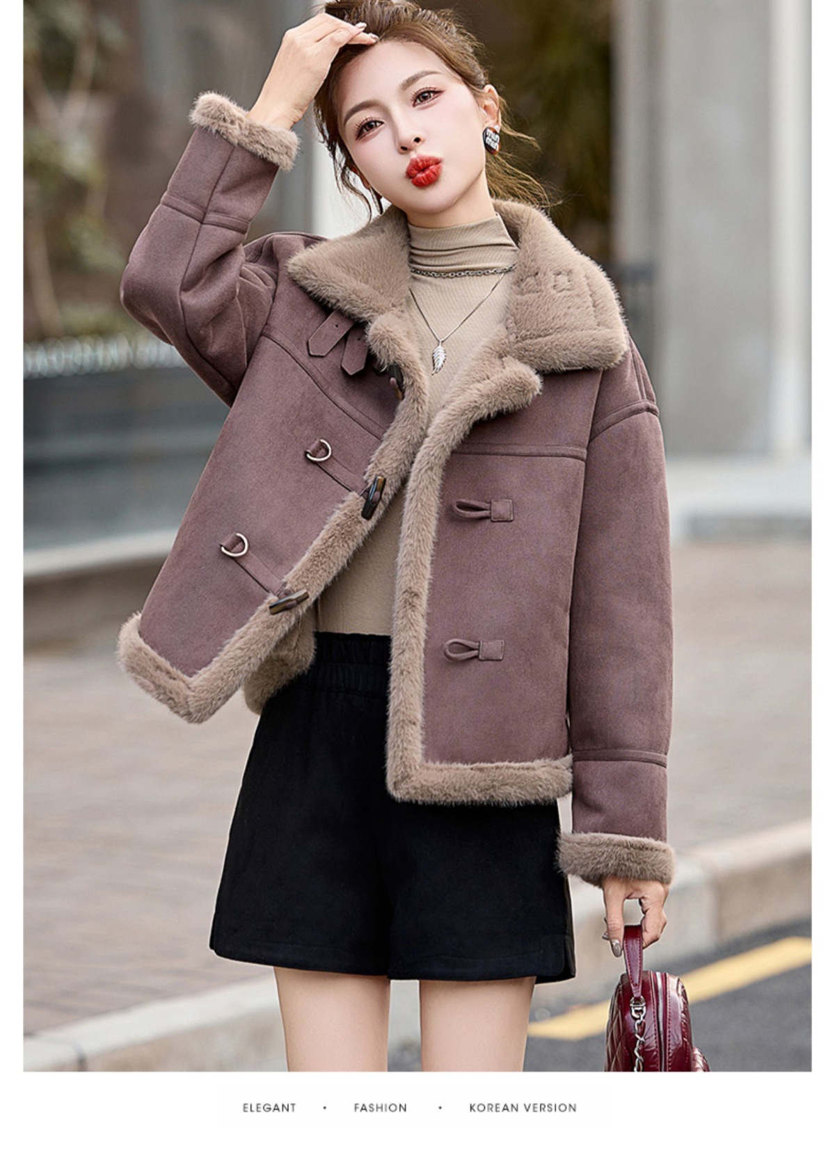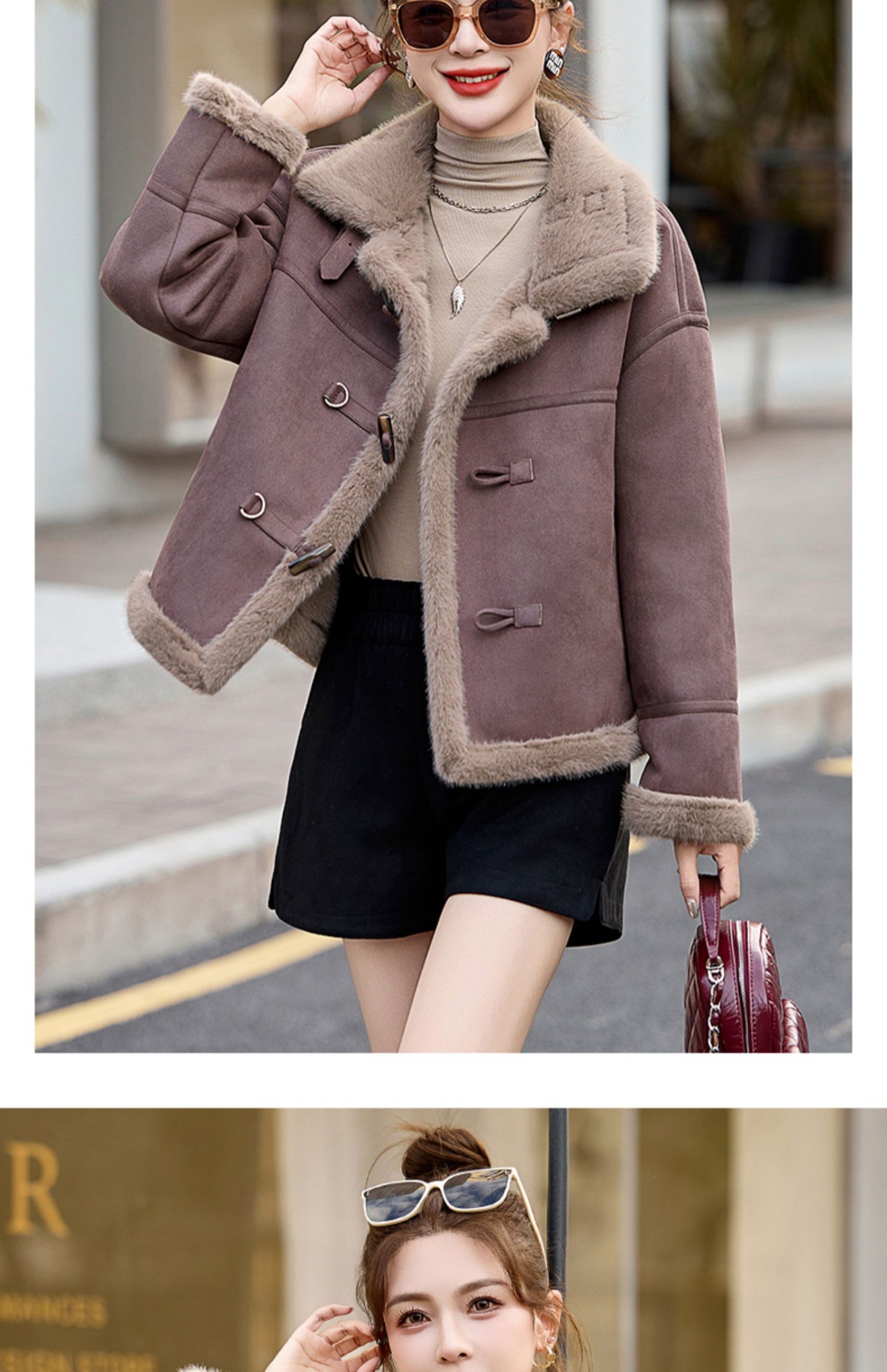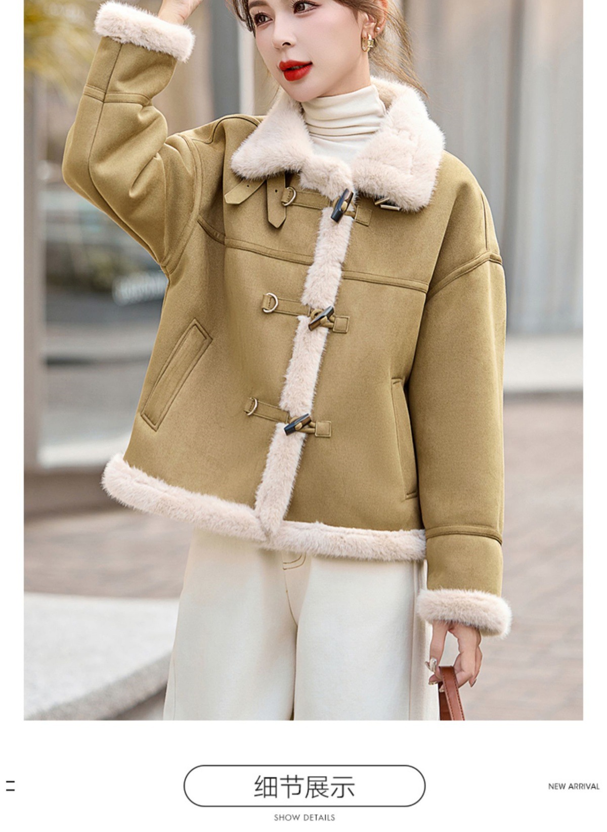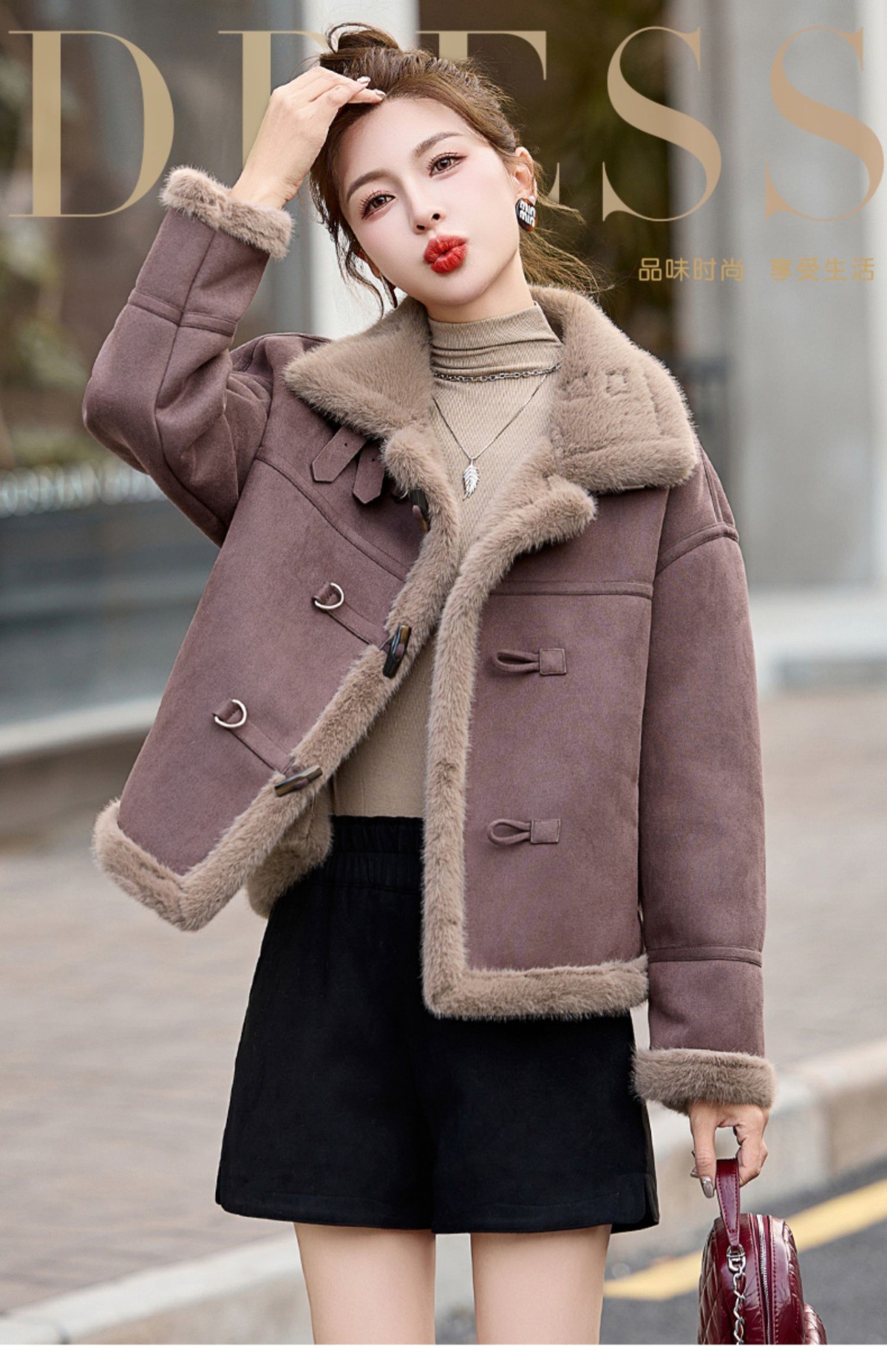 丁摩皮毛一体羊羔毛厚外套女冬2025新款小个子短款仿鹿皮绒机车服上衣ALW9937 0