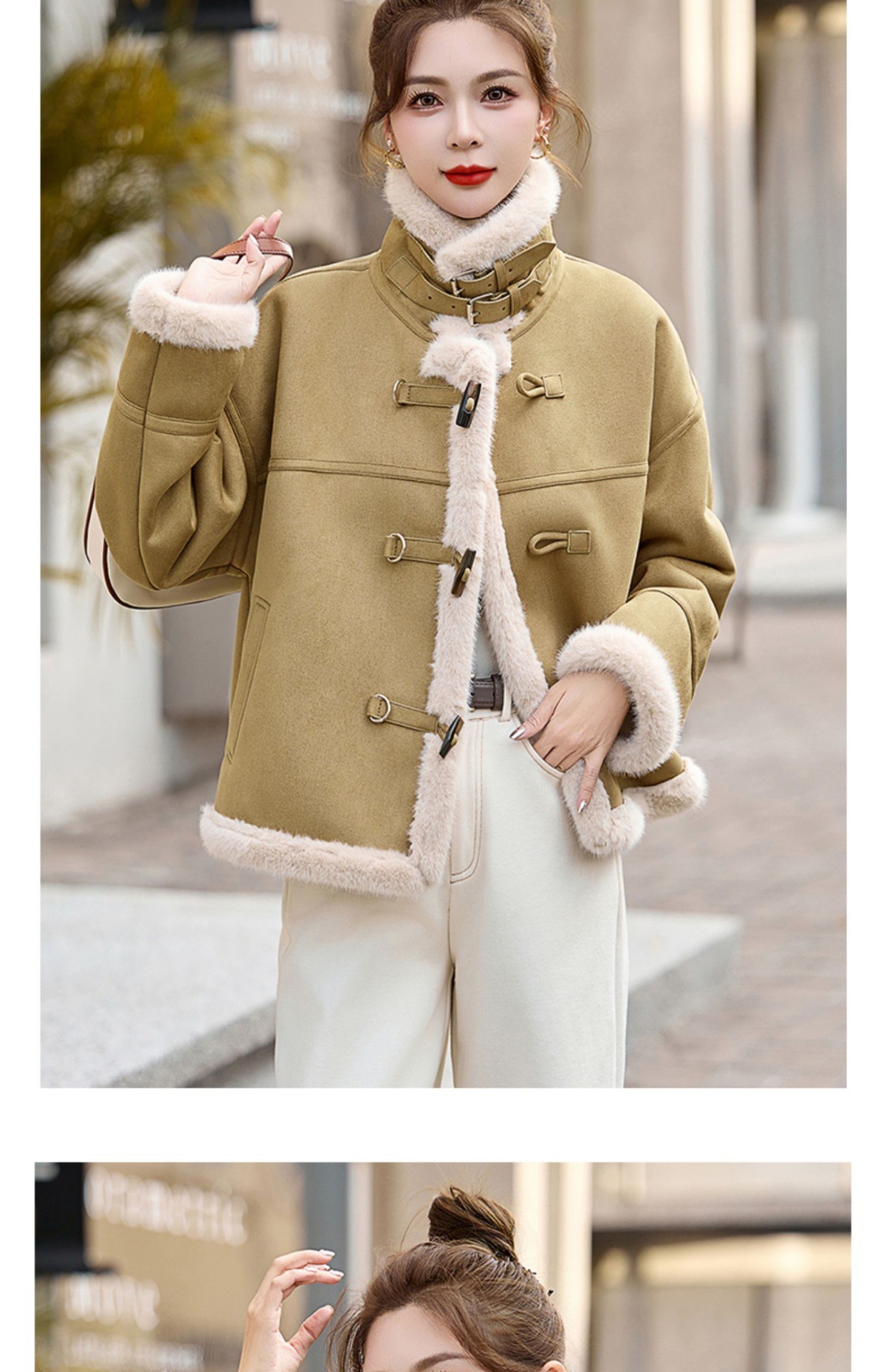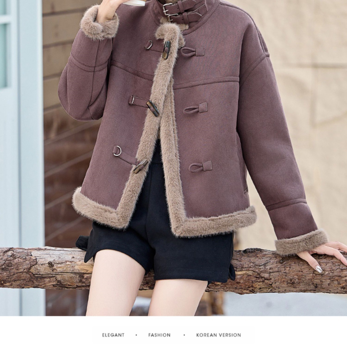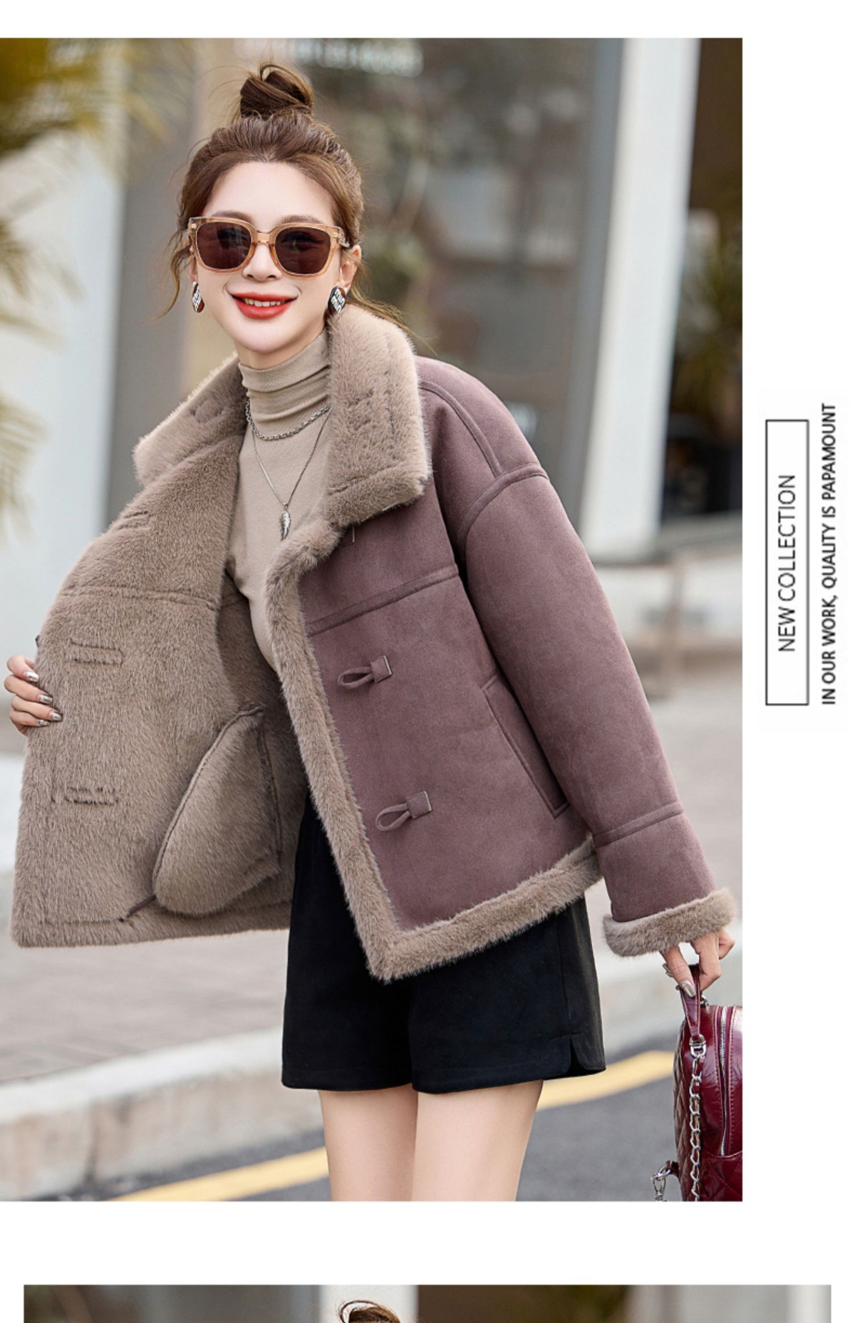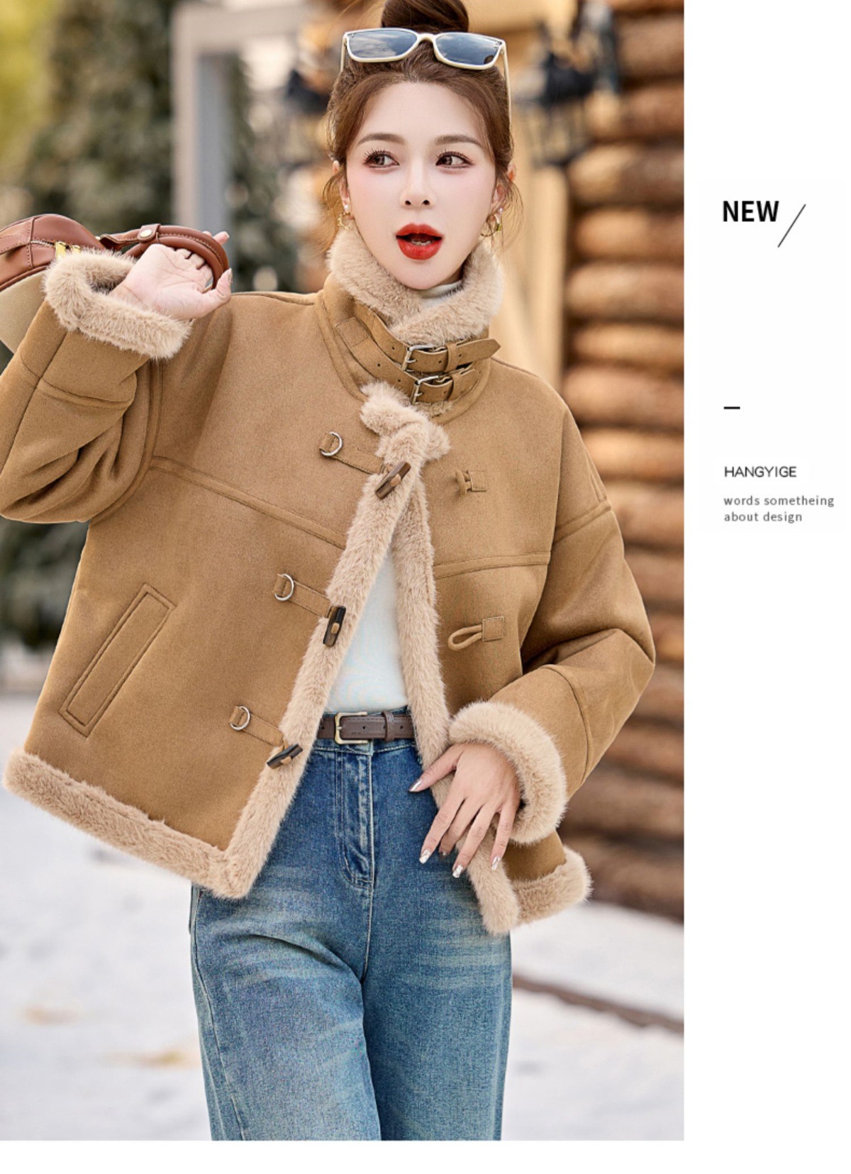 丁摩皮毛一体羊羔毛厚外套女冬2025新款小个子短款仿鹿皮绒机车服上衣ALW9937 0