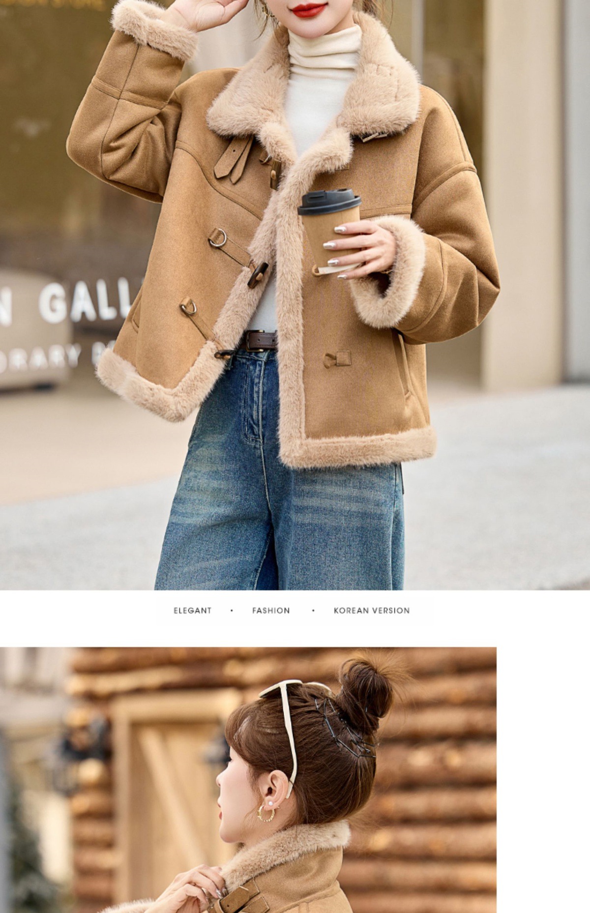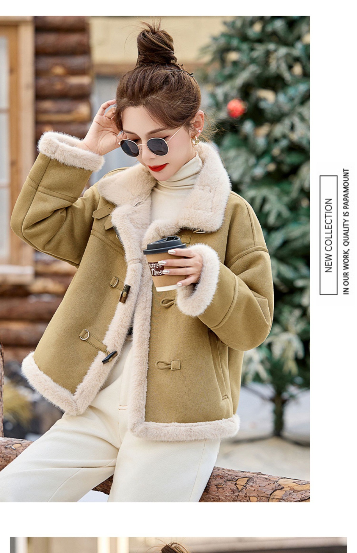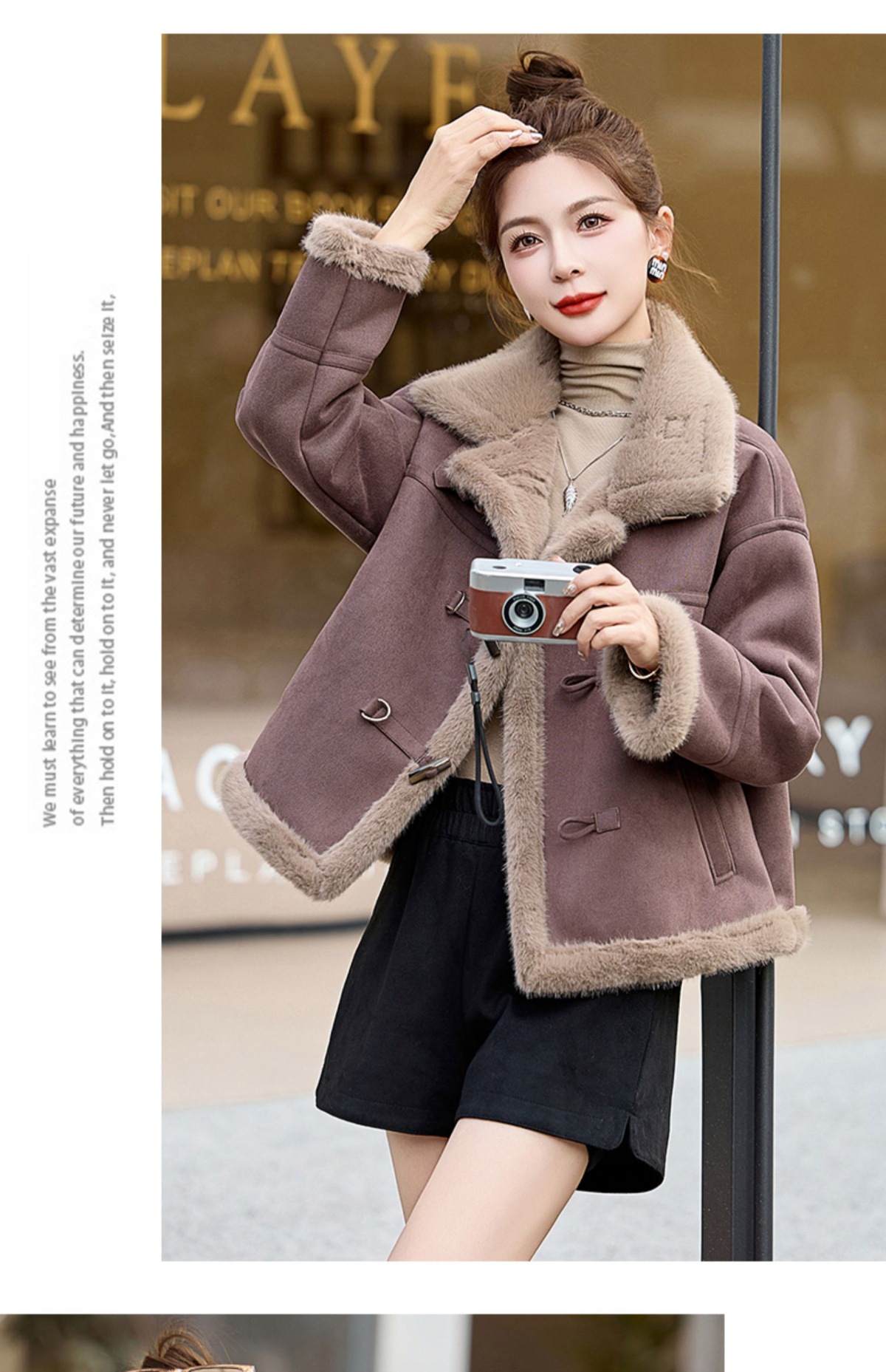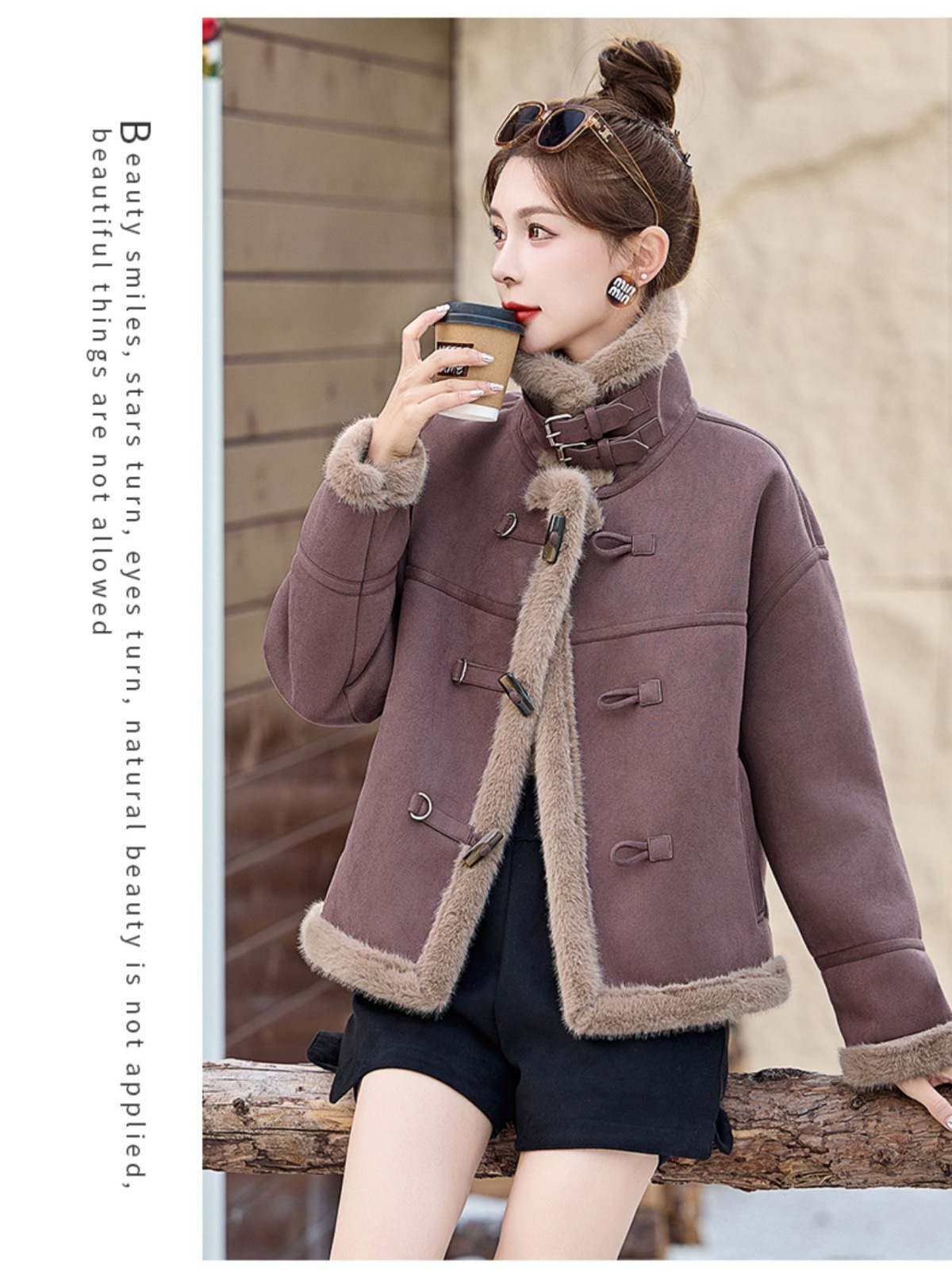 丁摩皮毛一体羊羔毛厚外套女冬2025新款小个子短款仿鹿皮绒机车服上衣ALW9937 0