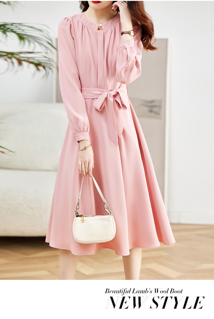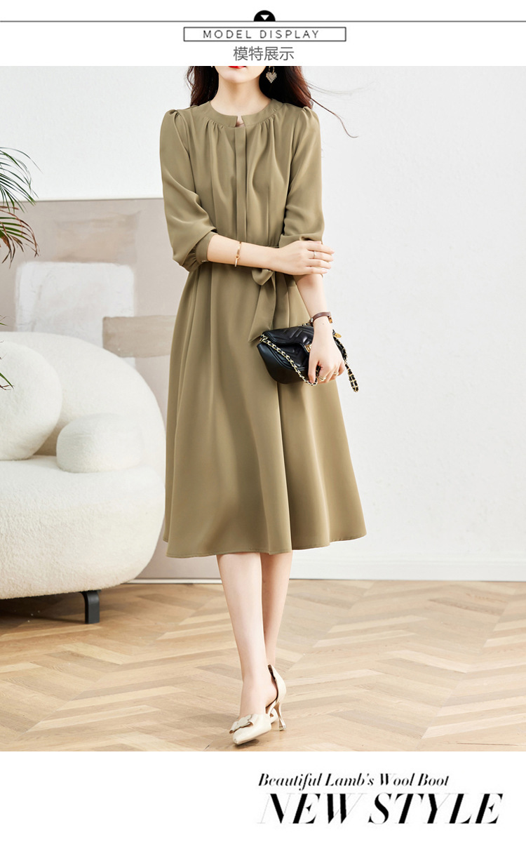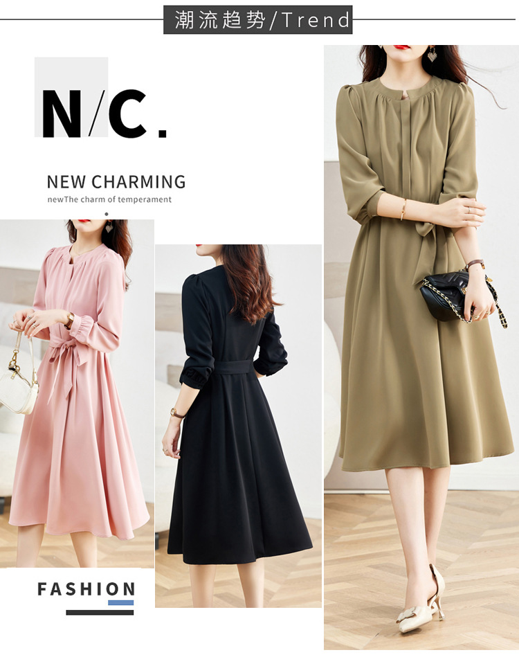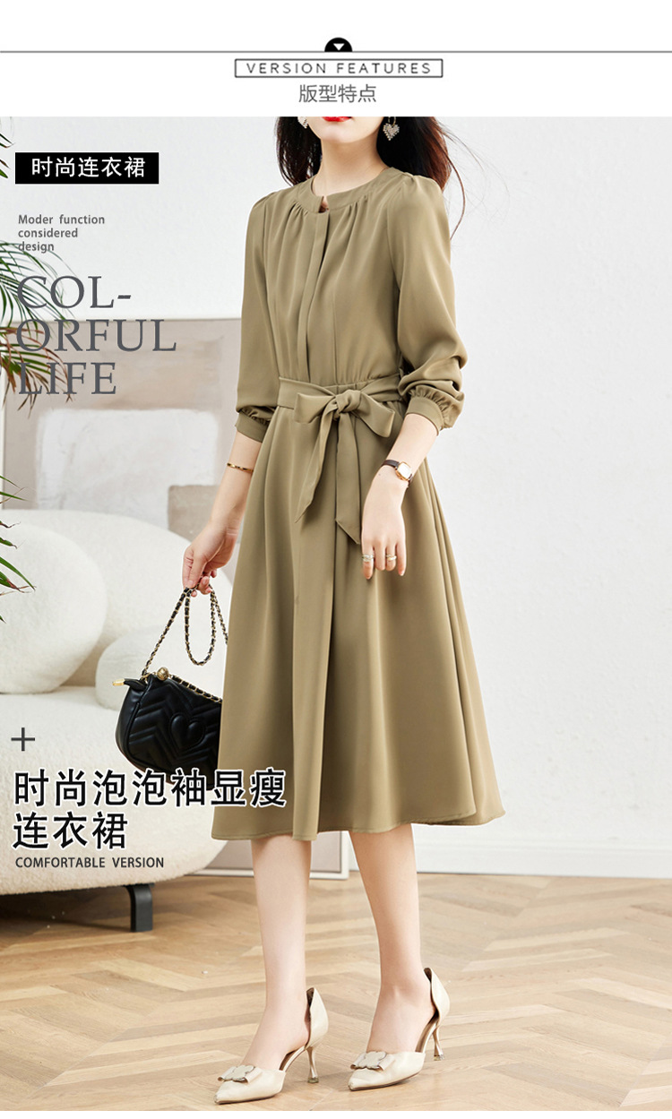 纯色圆领泡泡袖,显瘦气质大摆裙连衣裙HR-QIXFS24019