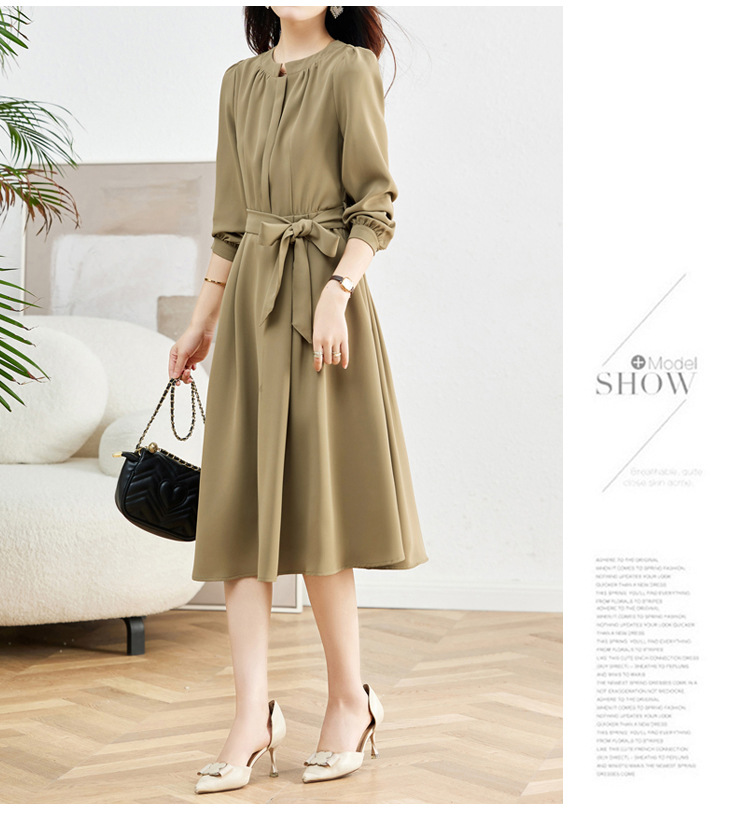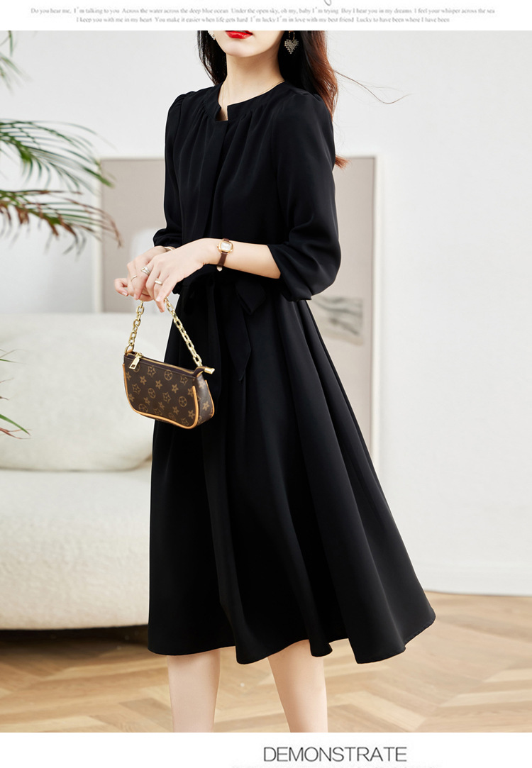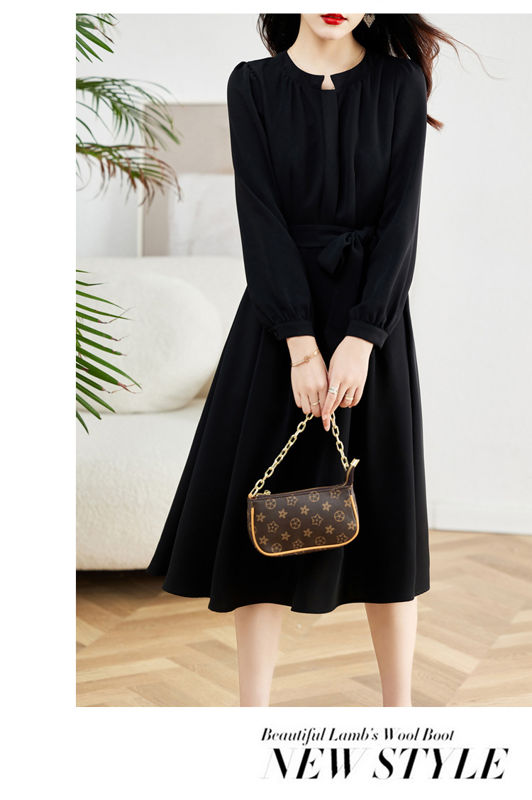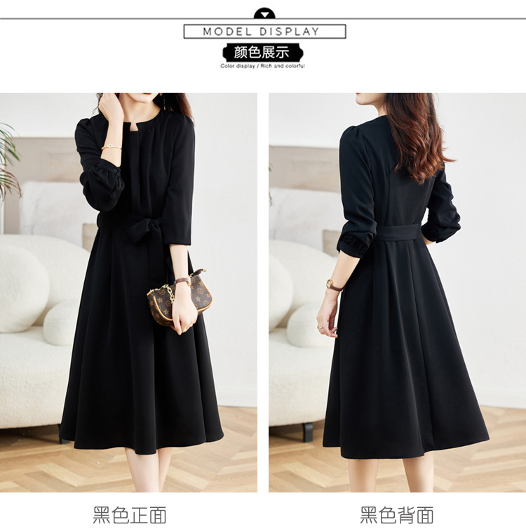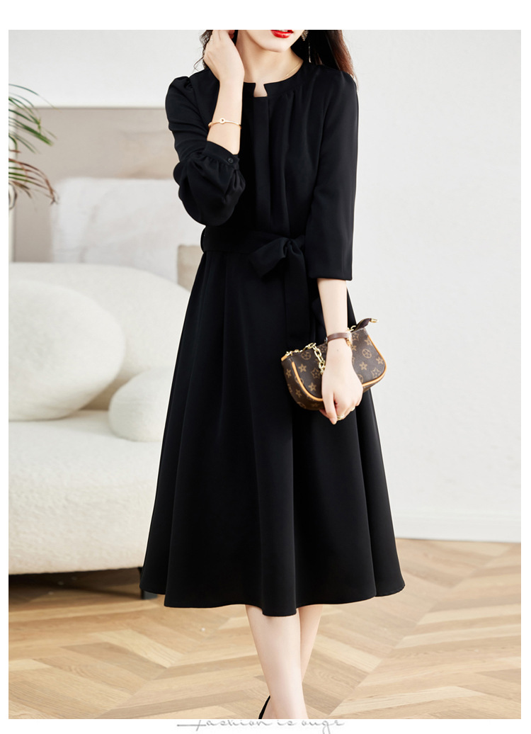 纯色圆领泡泡袖,显瘦气质大摆裙连衣裙HR-QIXFS24019