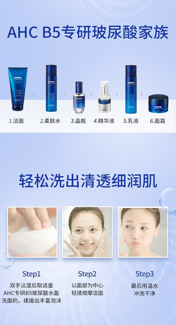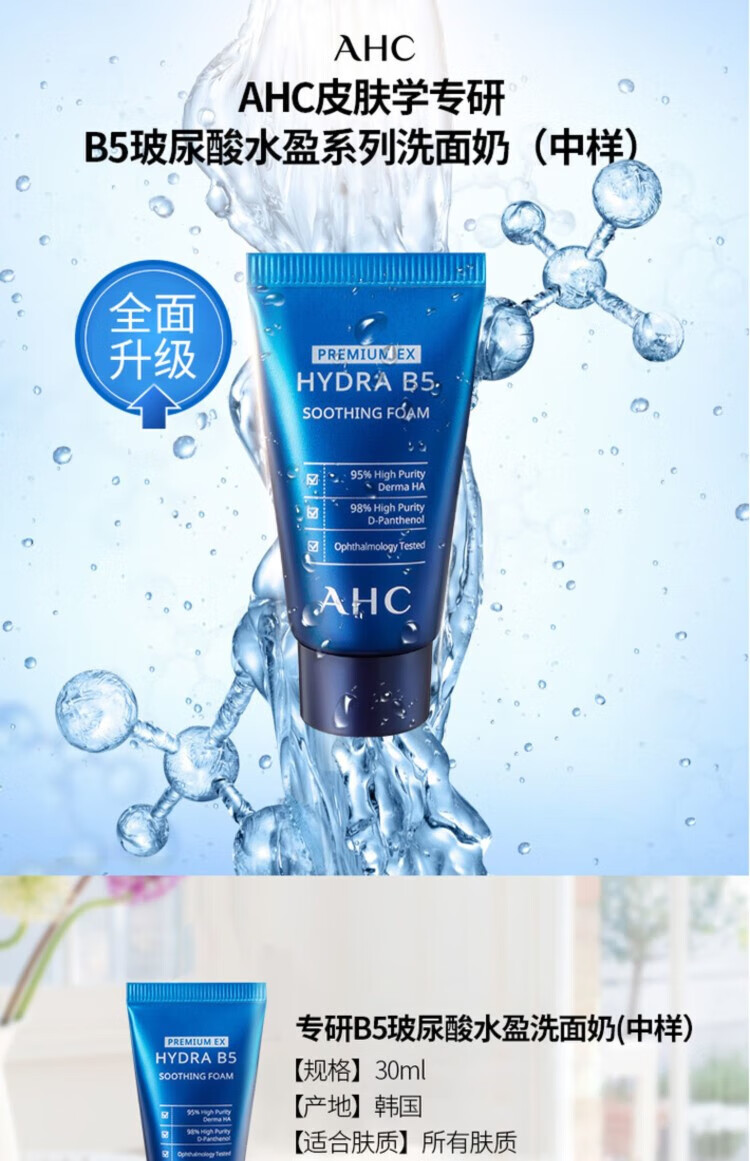 【9.9专区】韩国AHC爱和纯玻尿酸B5洗面奶30ml中样每人限购一支