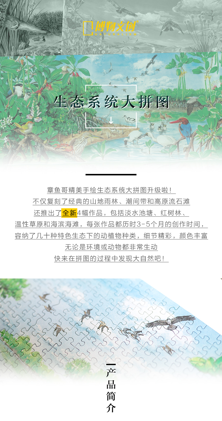 博物小馆原创【生态系统大拼图】章鱼哥精美手绘1000块拼图