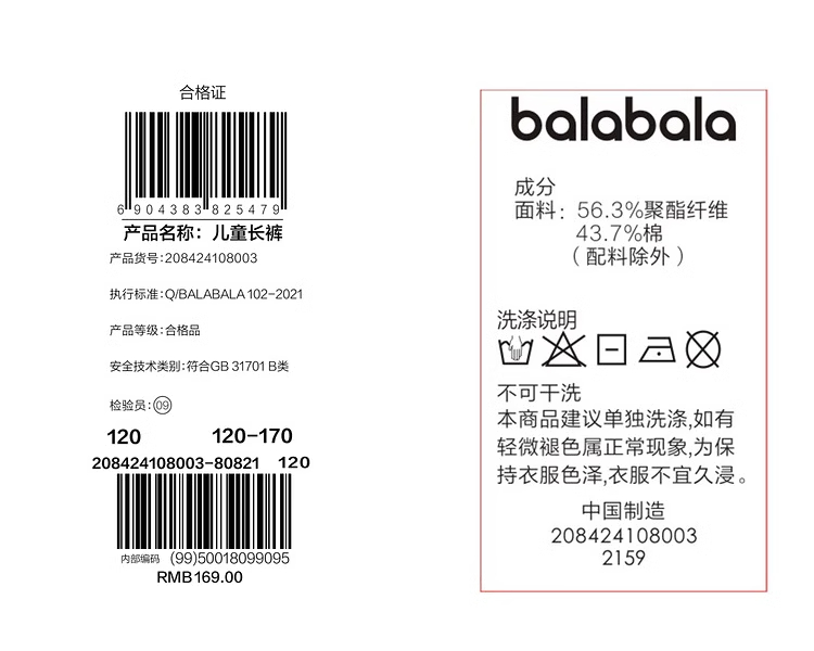 巴拉巴拉童装女童裤子冬装中大童加绒长裤保暖儿童休闲裤时尚运动