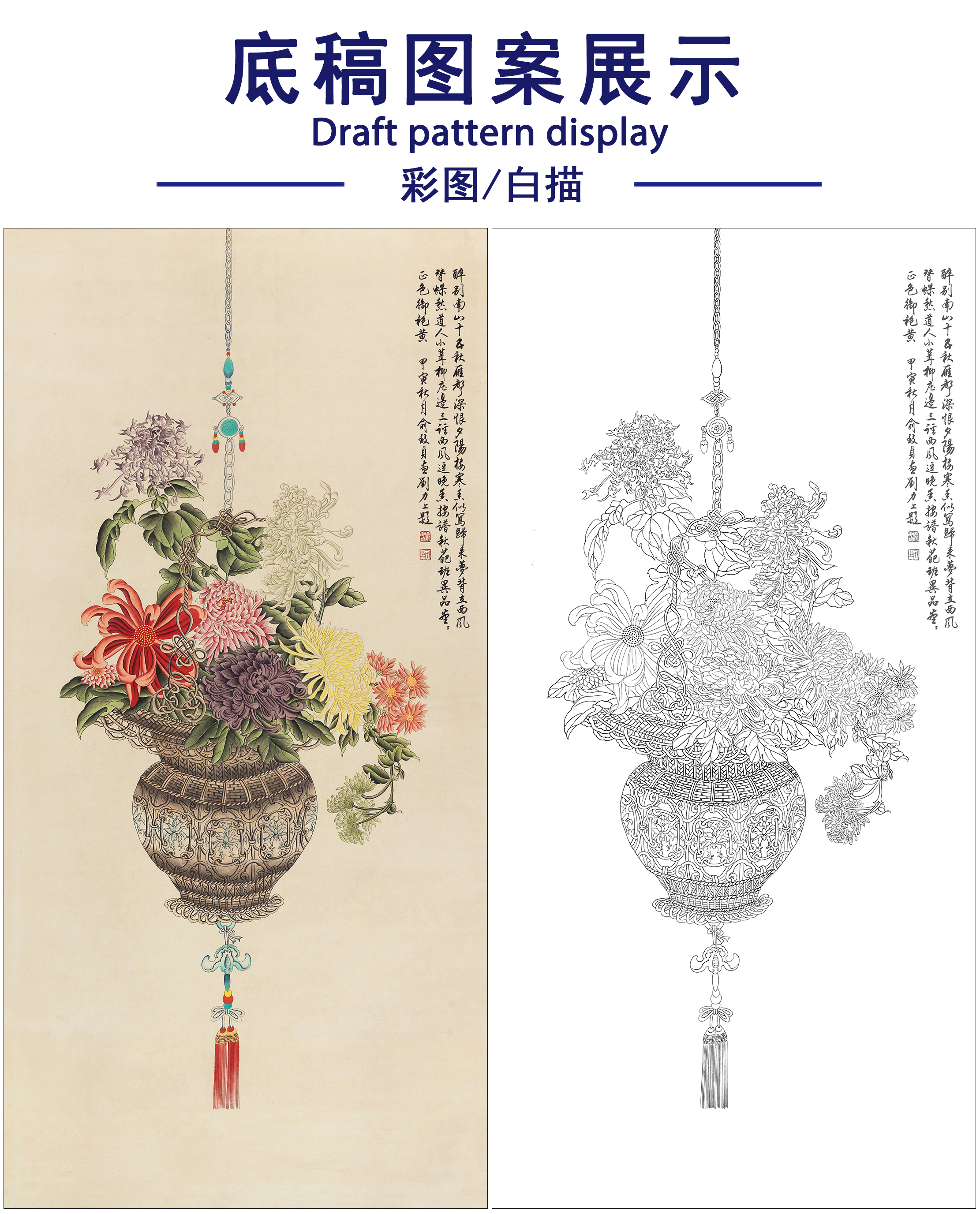 俞致贞花鸟工笔画白描底稿《寒香》花篮临摹勾线高清打印稿ZZ67