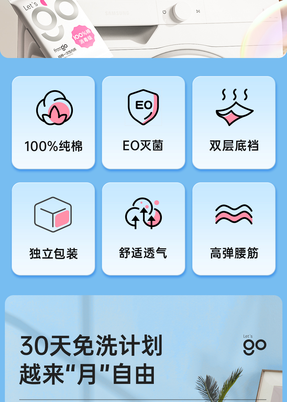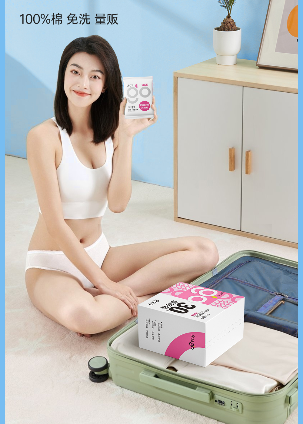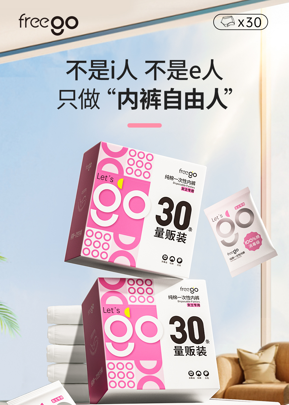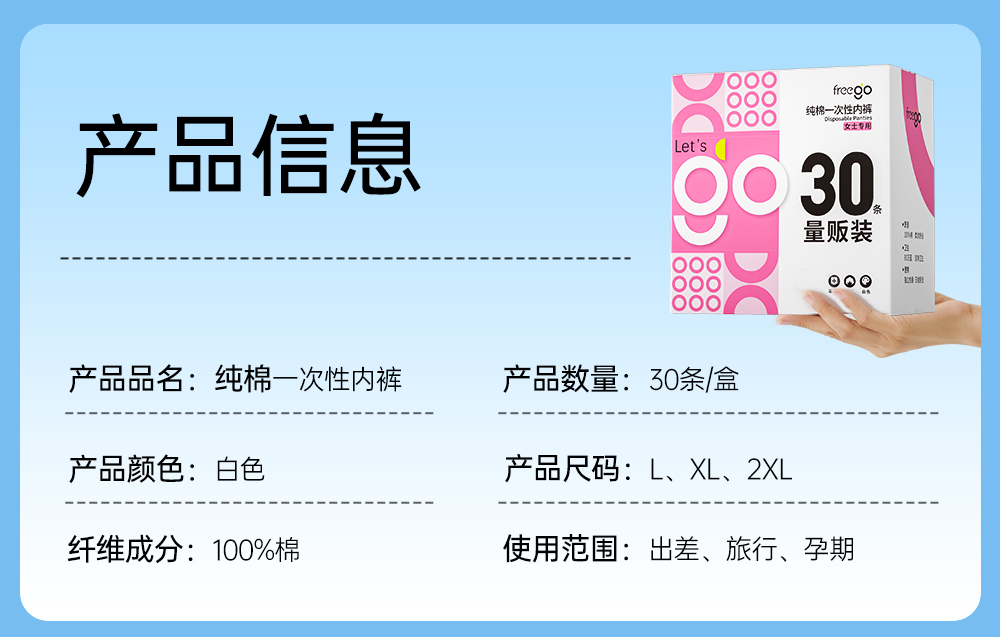 【无菌级】Freego「30条量贩装」7A抗菌纯棉一次性内裤女「加量不加价」