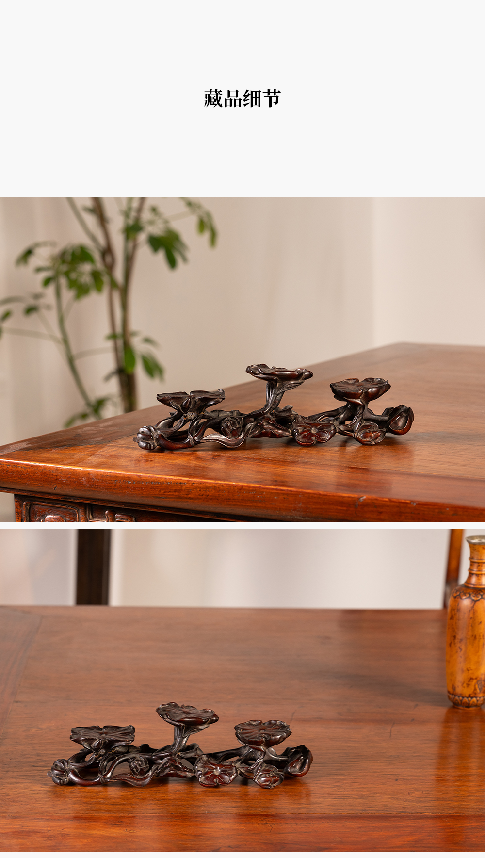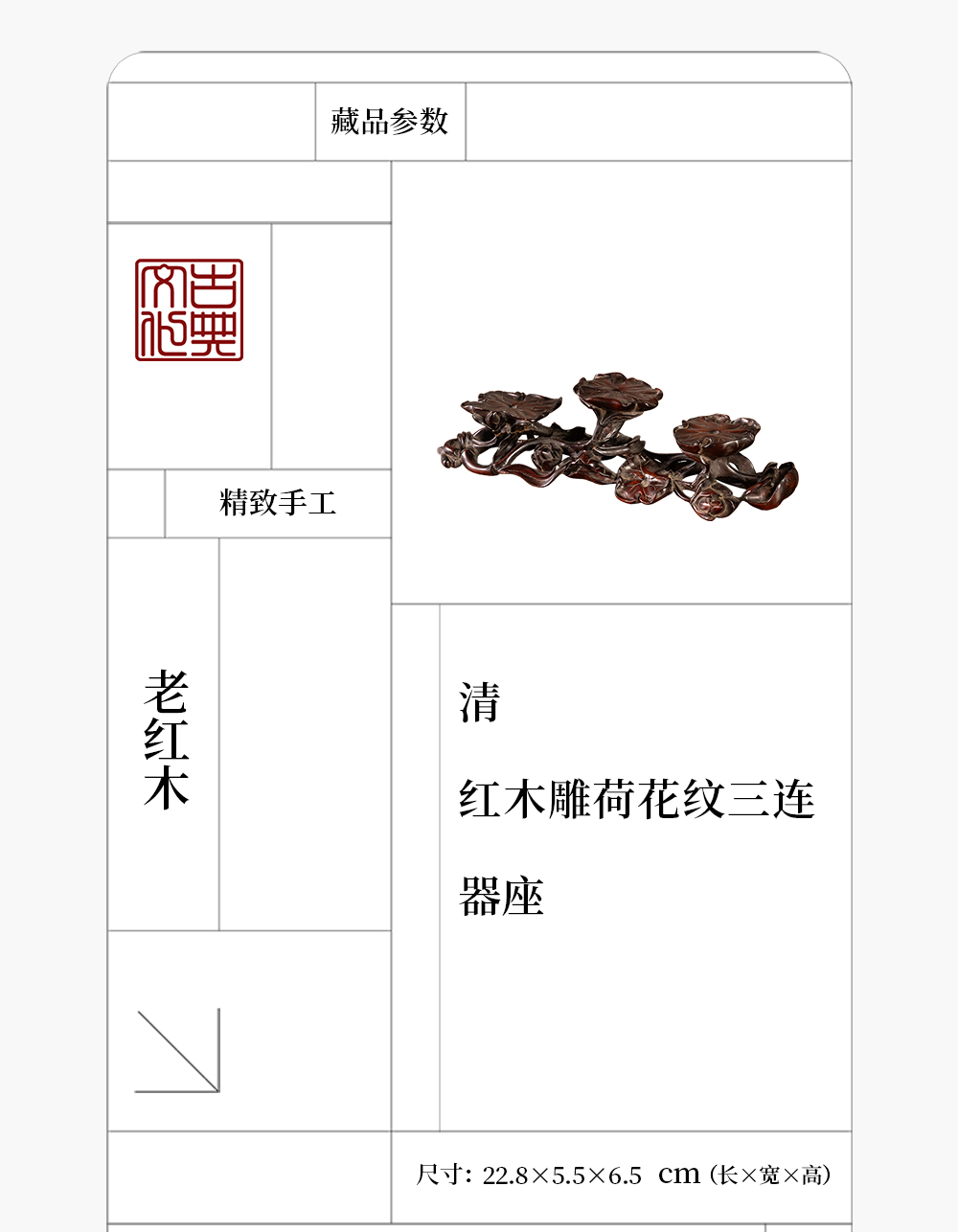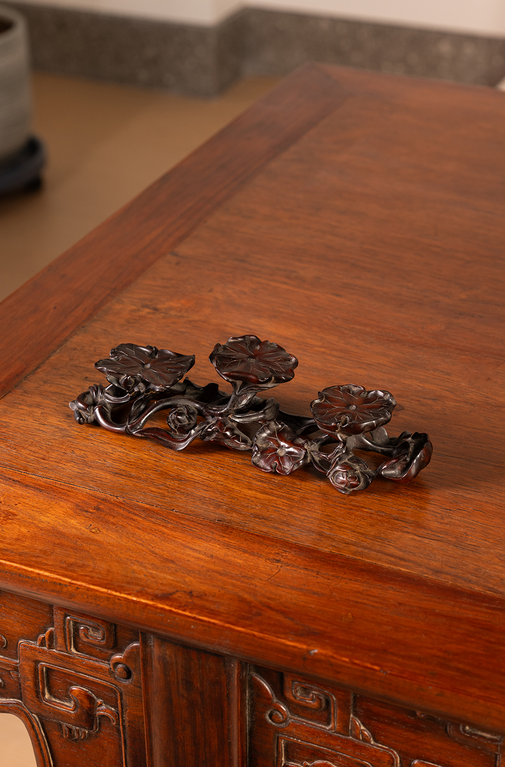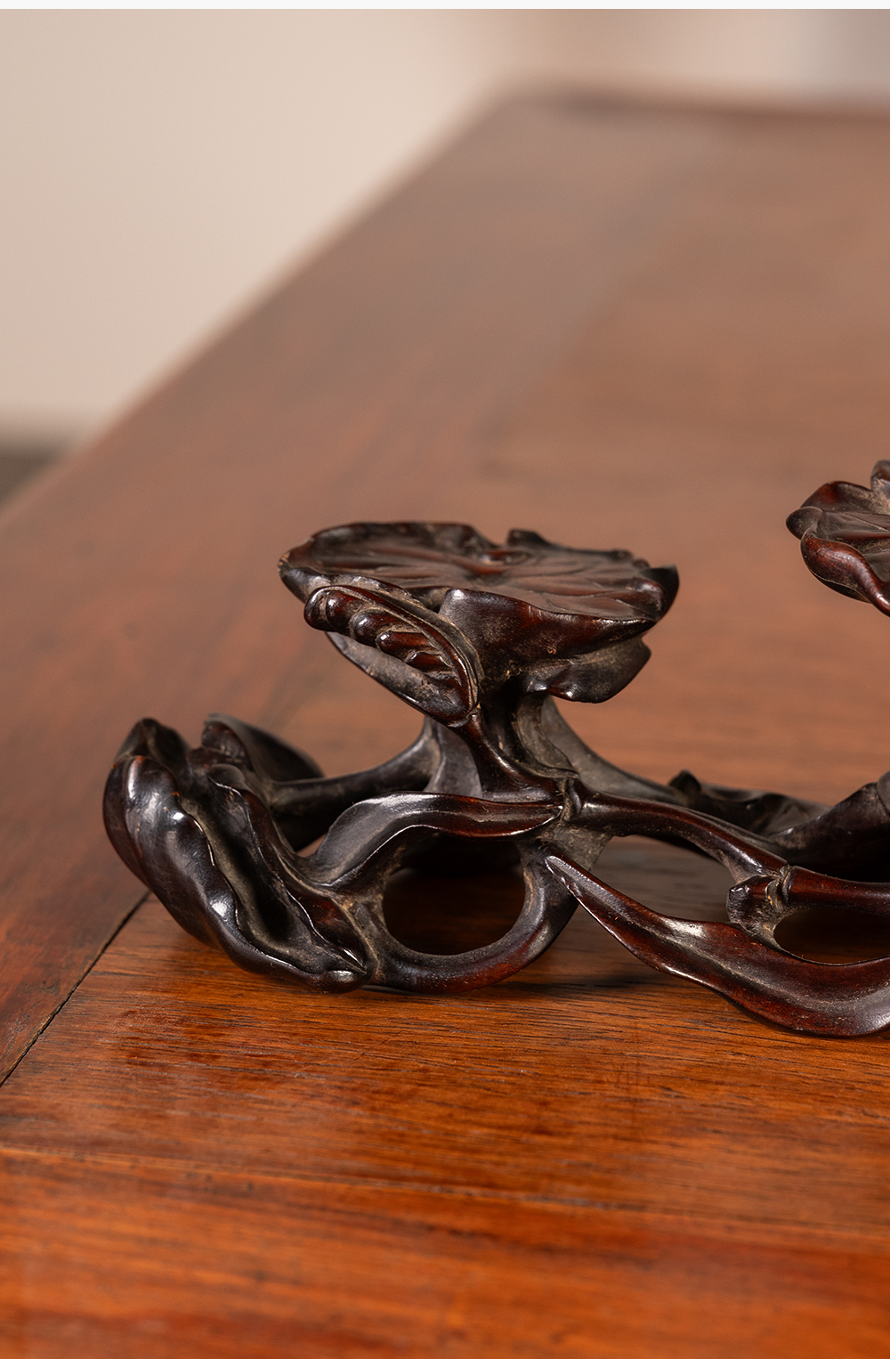 清 红木雕荷花纹三连器座