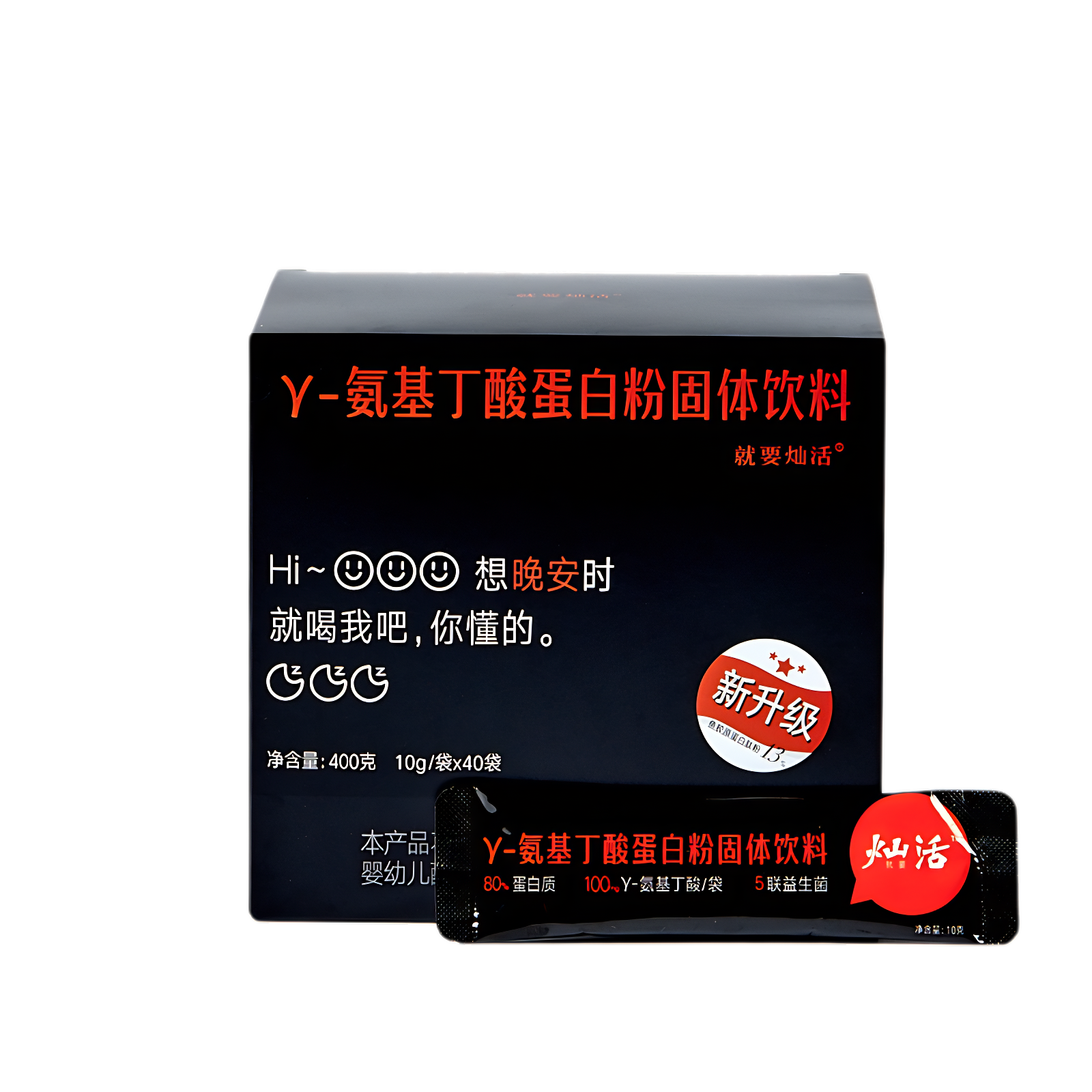 预售【让您晚安】灿活γ-氨基丁酸蛋白粉 | 双蛋白含量80>% 含胶原蛋白肽13% 5种益生菌 100mgGABA 4种维矿 3种益生元 0植脂末0蔗糖 10g/袋*40袋/盒