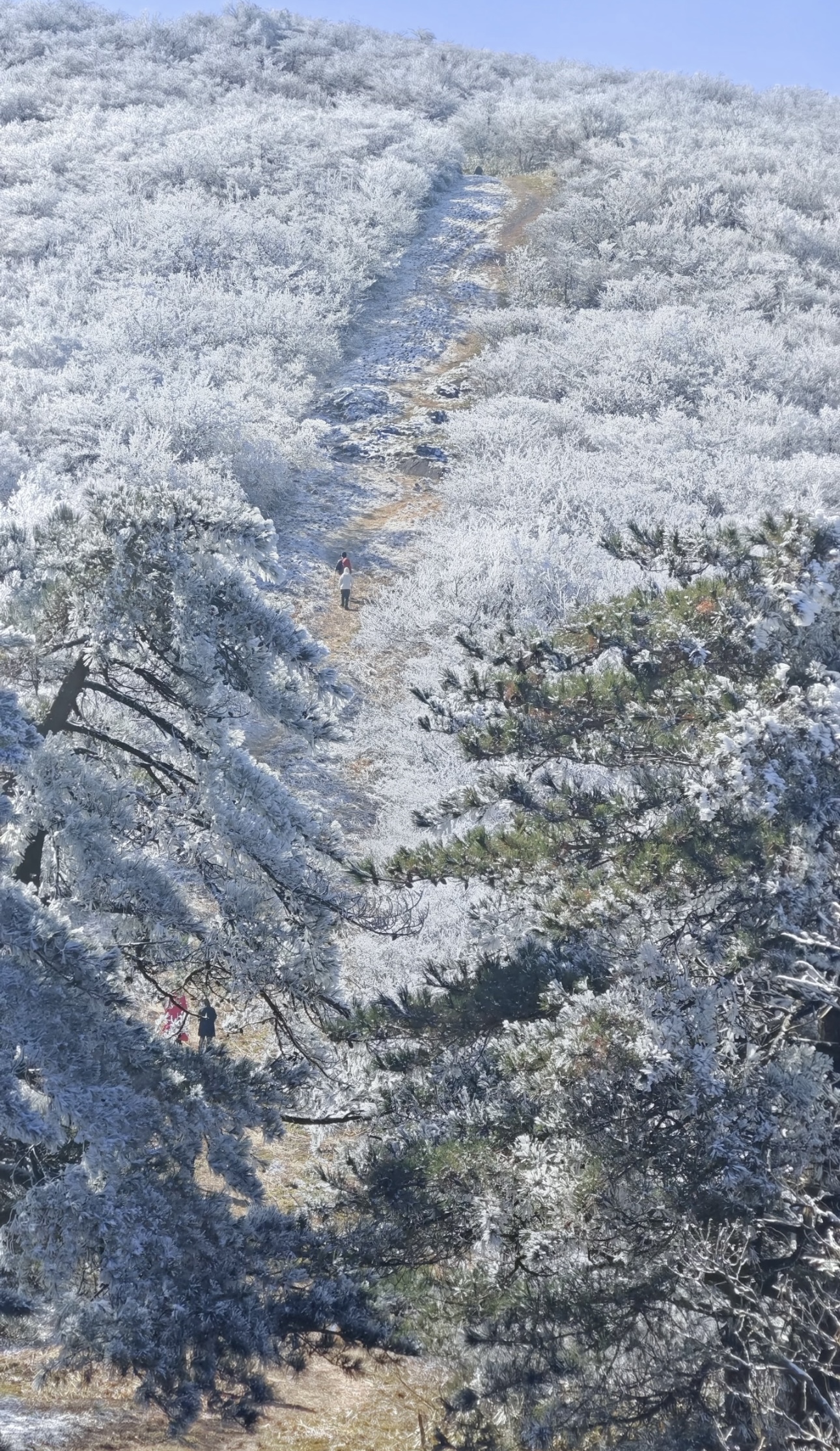 · 雾凇盛宴:漫山冰晶树挂,阳光下闪烁如钻石星河
