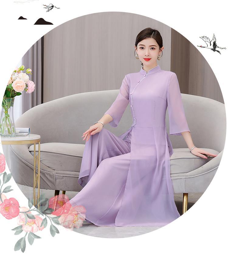 ZFN9074改良汉服女国风套装新中式盘扣上衣禅服旗袍连衣裙唐装茶服夏