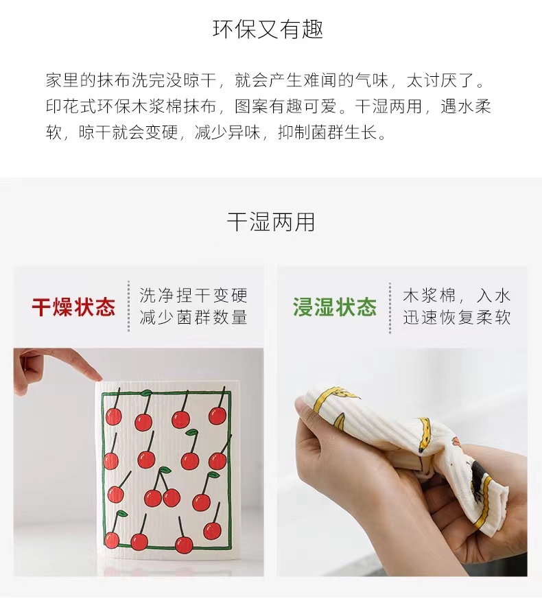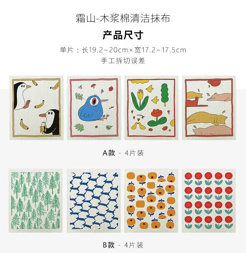 高颜值环保木浆棉抹布4片装组合 可水洗可反复使用