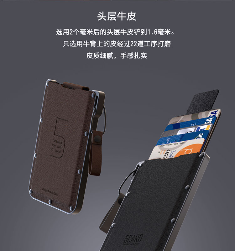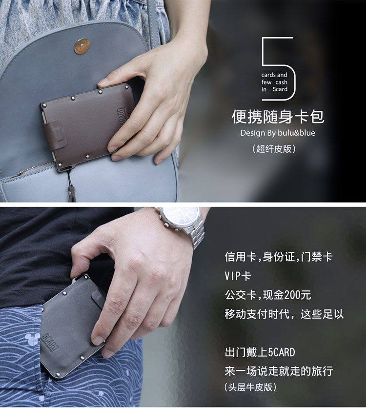 5CARD头层牛皮卡包男士超薄多卡位真皮卡片包装放银行卡套卡夹信