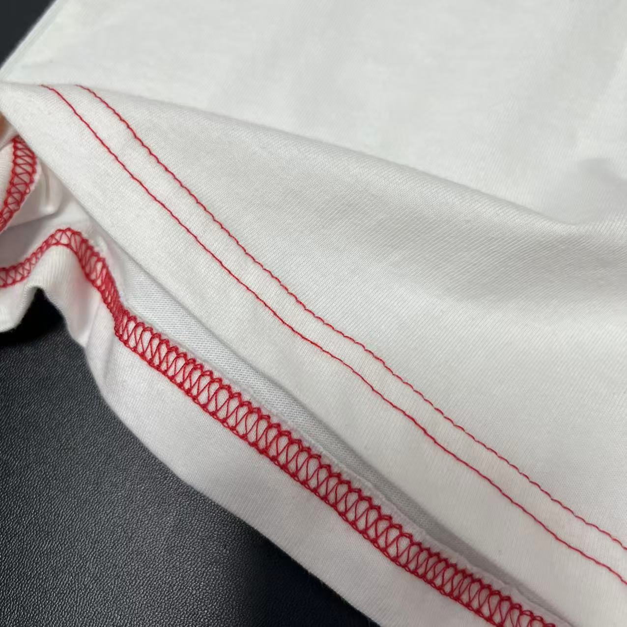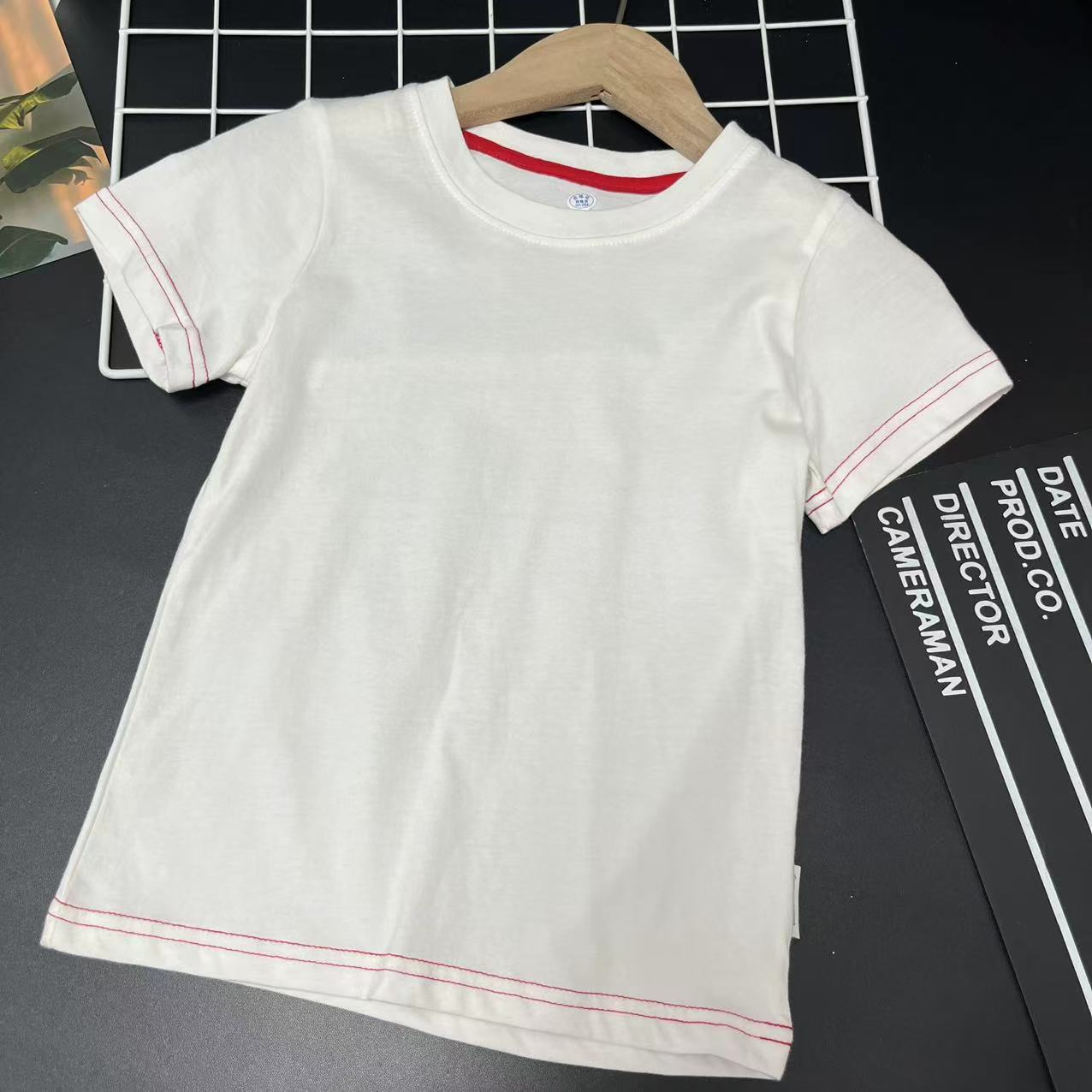 【选2件15元-NO退】120经典泰迪全棉红色明线白短袖-微脏-喜出